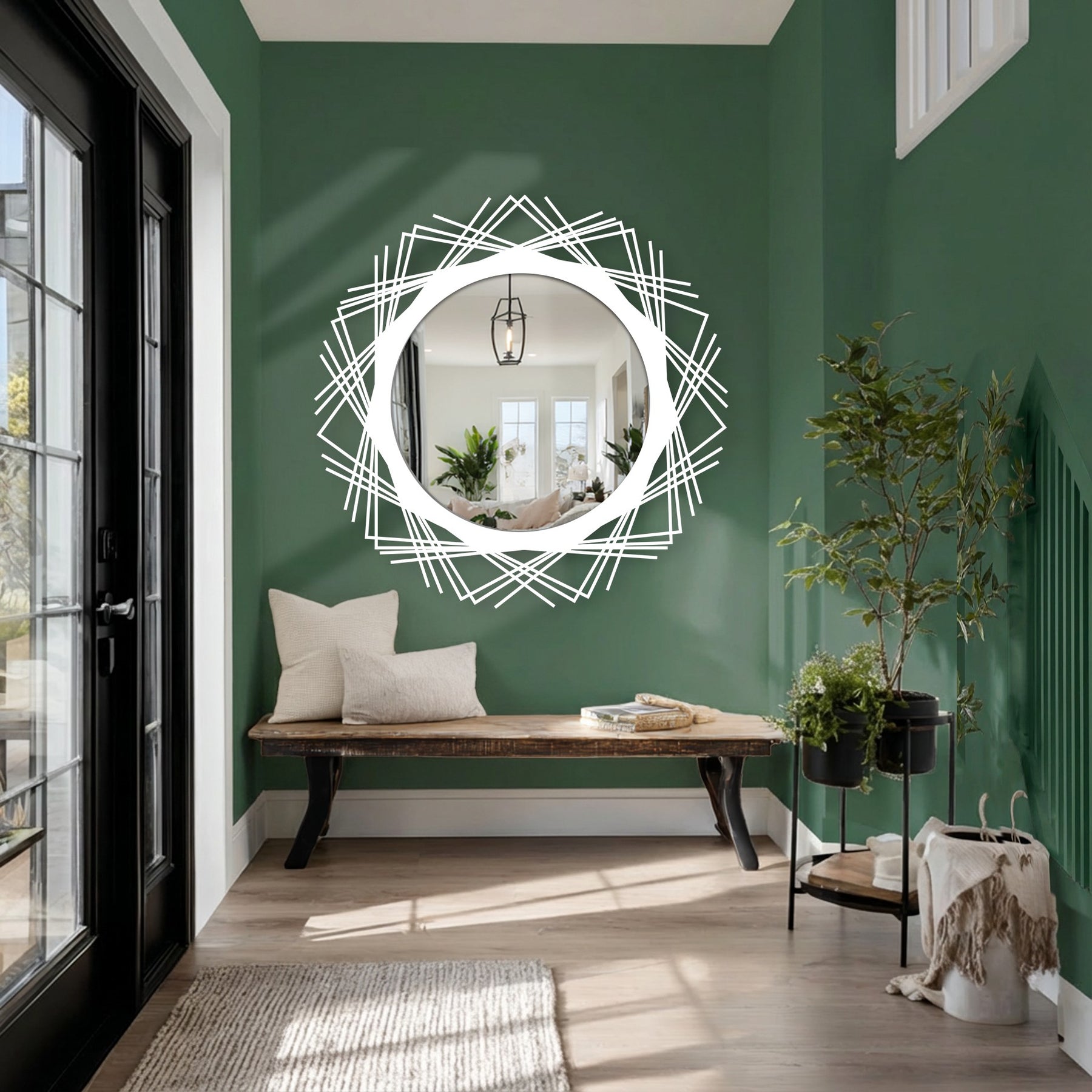 Crossed Line Halo Round Decorative Wall Mirror – Modern Geometric Mirror Wall Decor