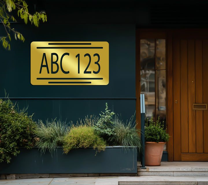 Horizontal metal house number plate with letters