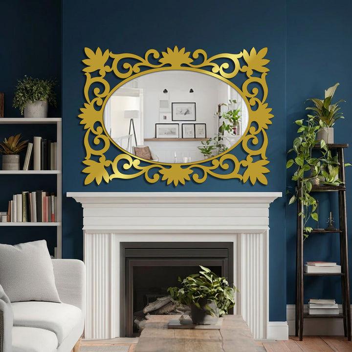 Floral Crown Oval Decorative Wall Mirror – Elegant Frame Accent