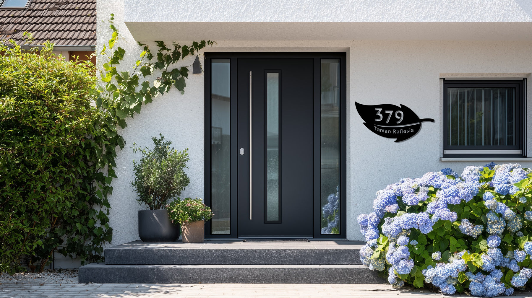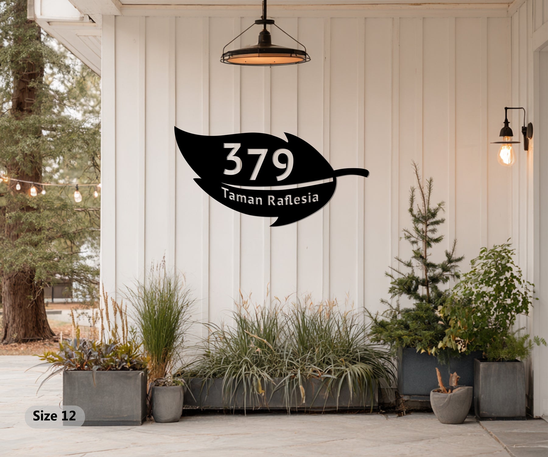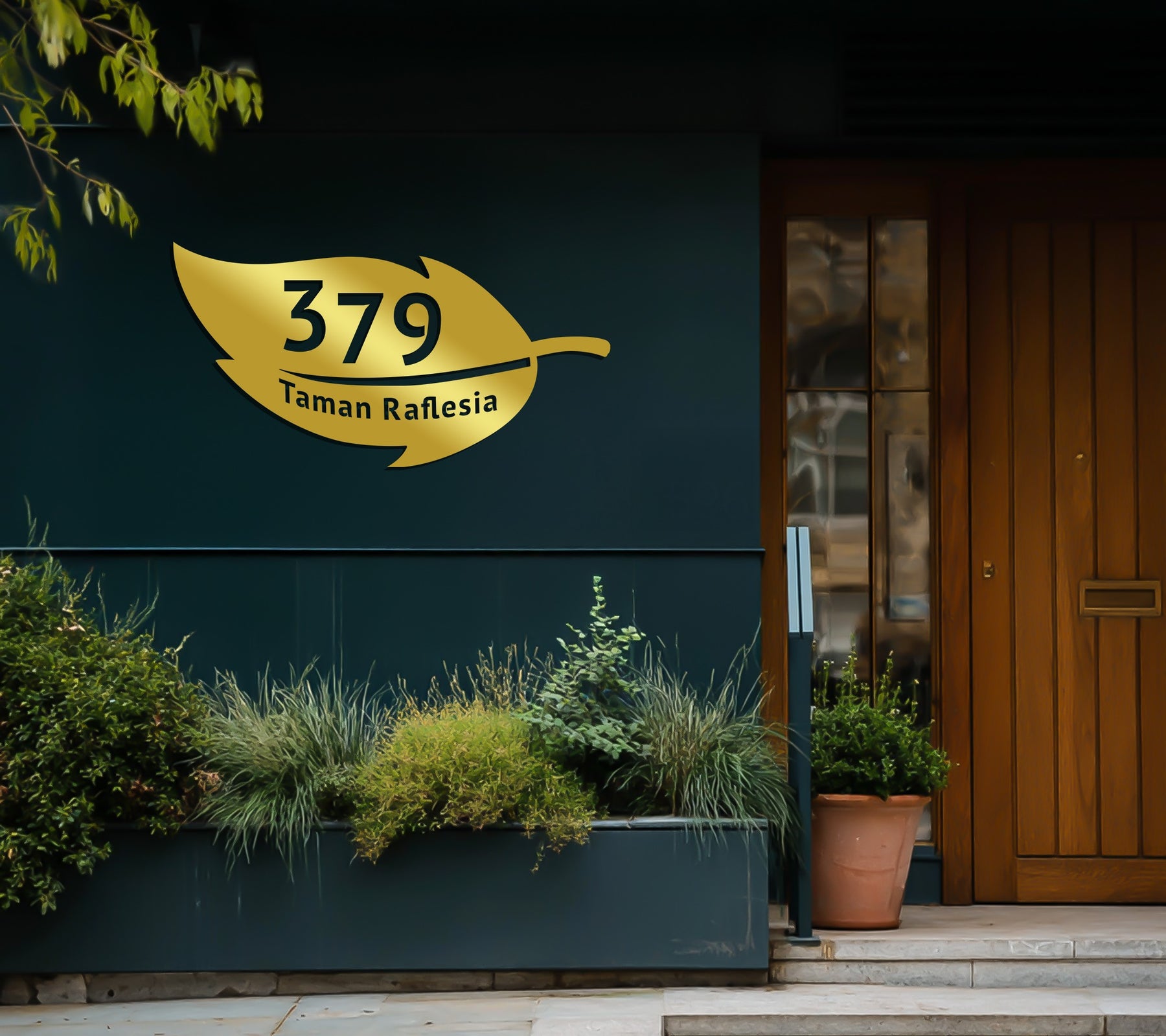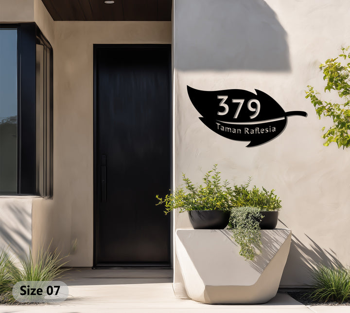 Custom metal address plaque with leaf design