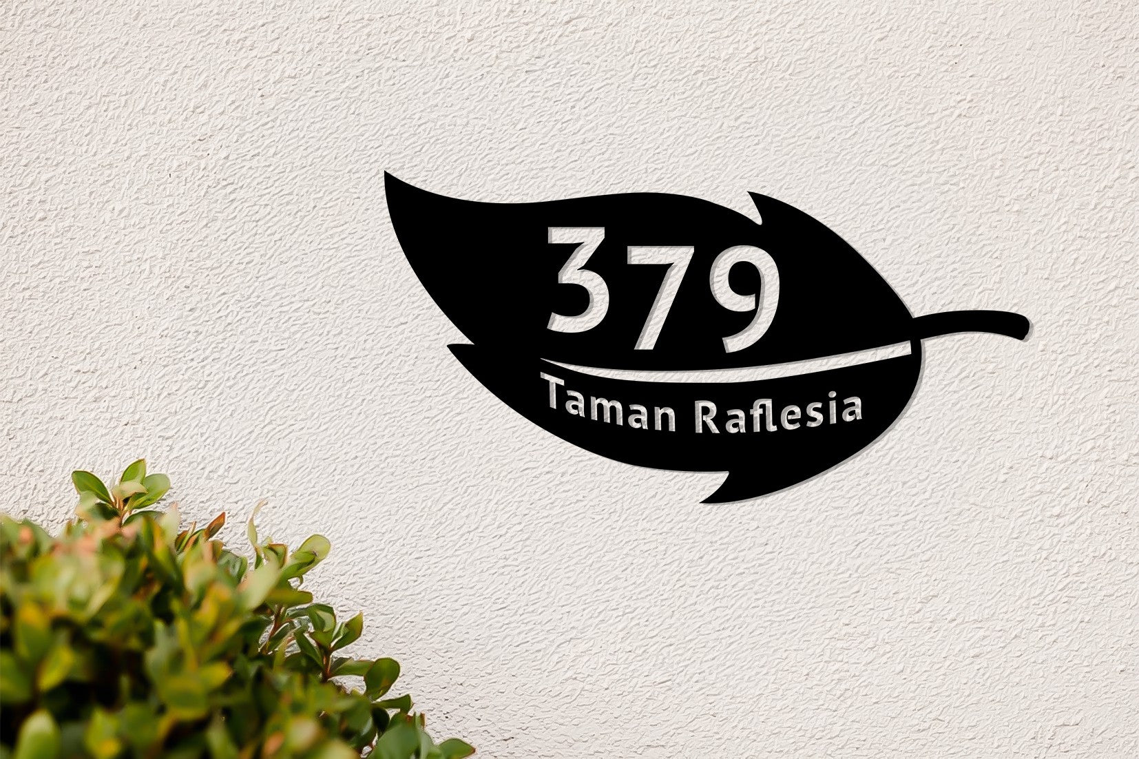 Black metal leaf address wall art
