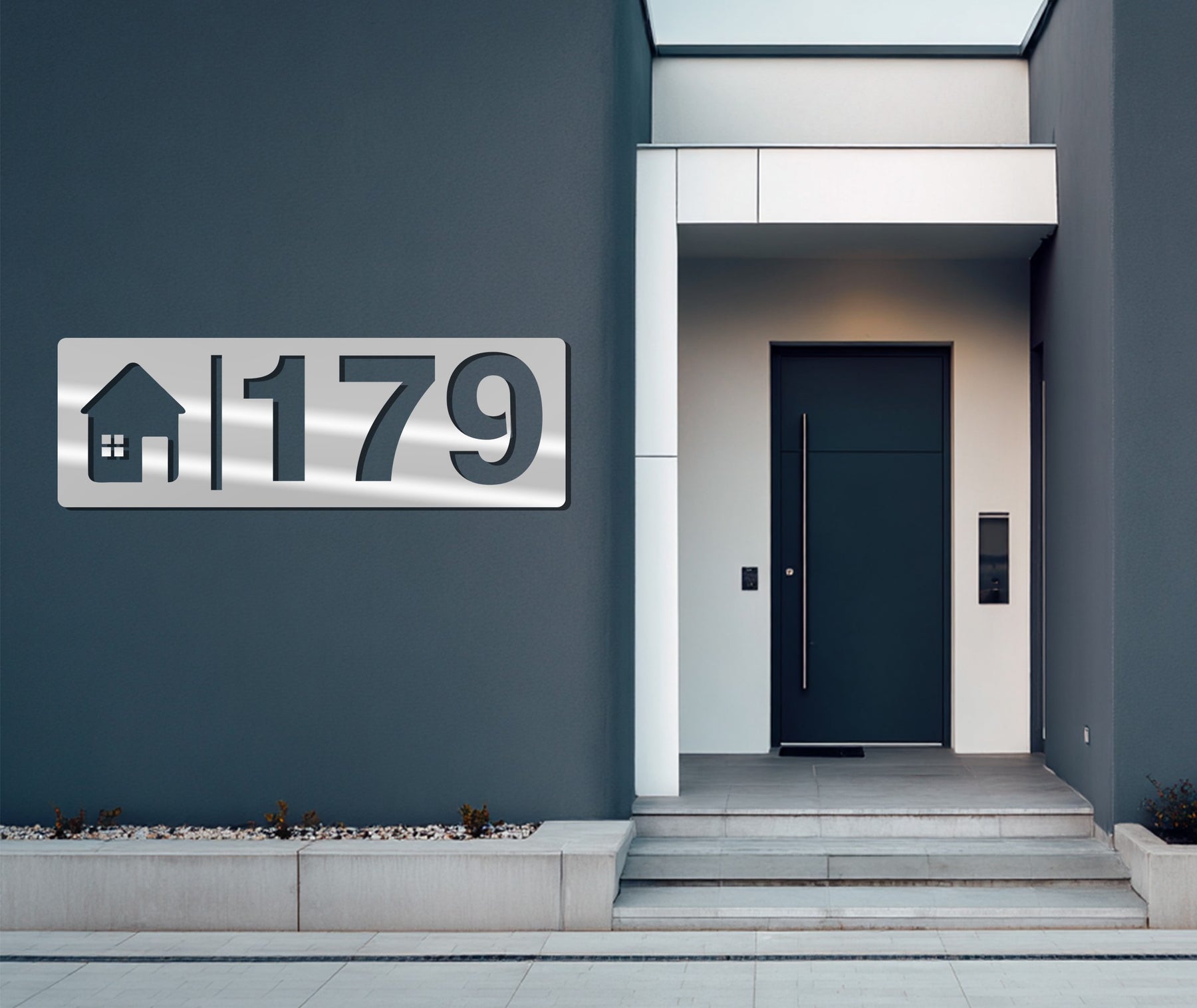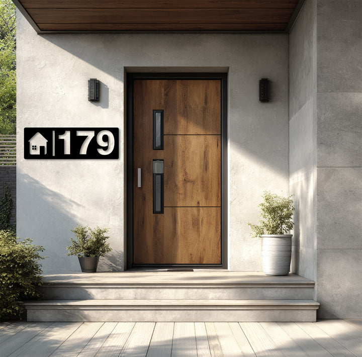 Modern metal home number plaque