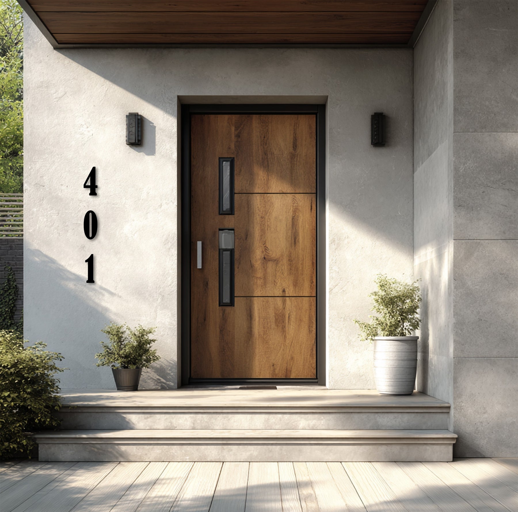 Vertical metal house numbers modern exterior