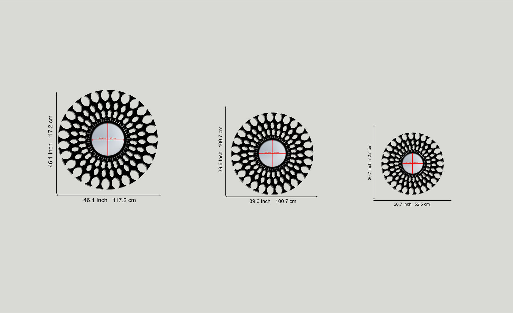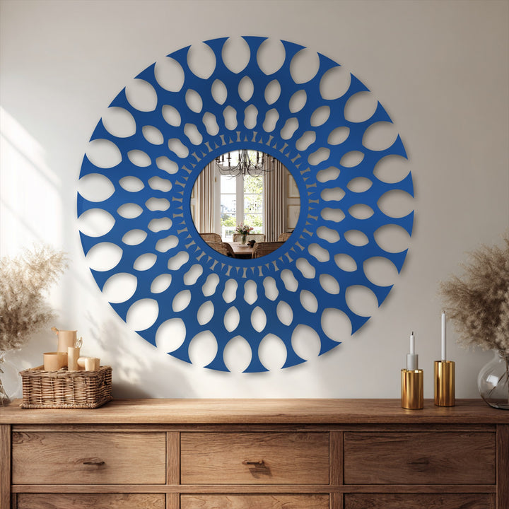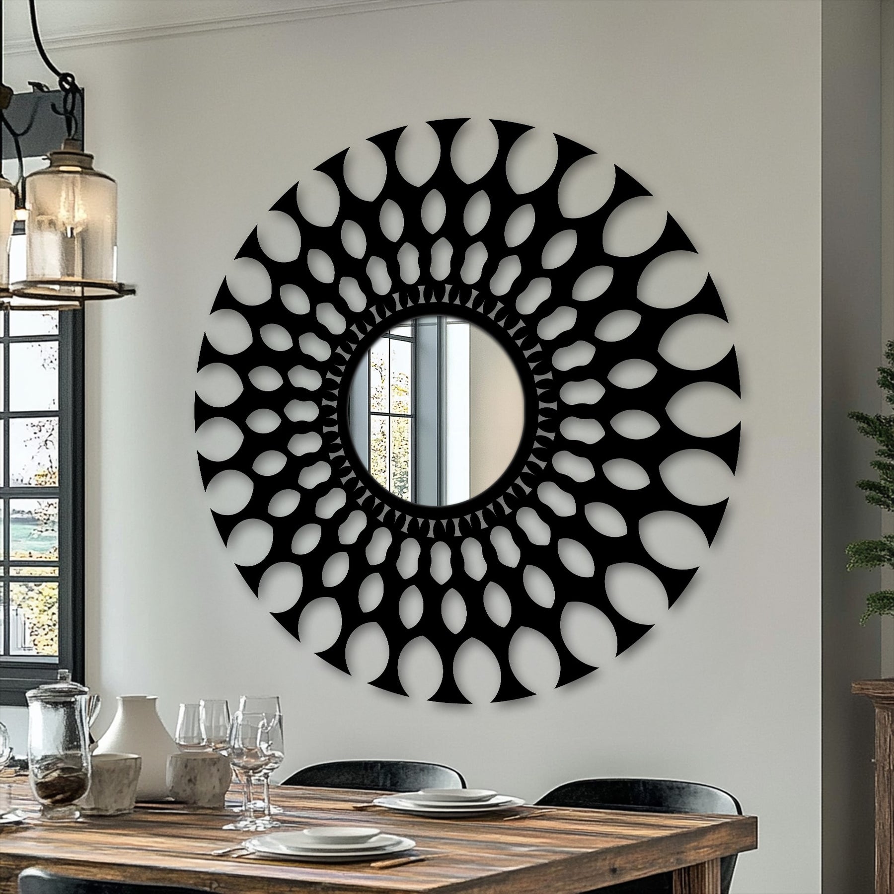 Displayed as a focal mirror wall decor, this modern wall mirror transforms plain walls into expressive design features. The structured frame provides durability and stability, while subtle construction details support the layered look and allow the pattern to remain the centerpiece.