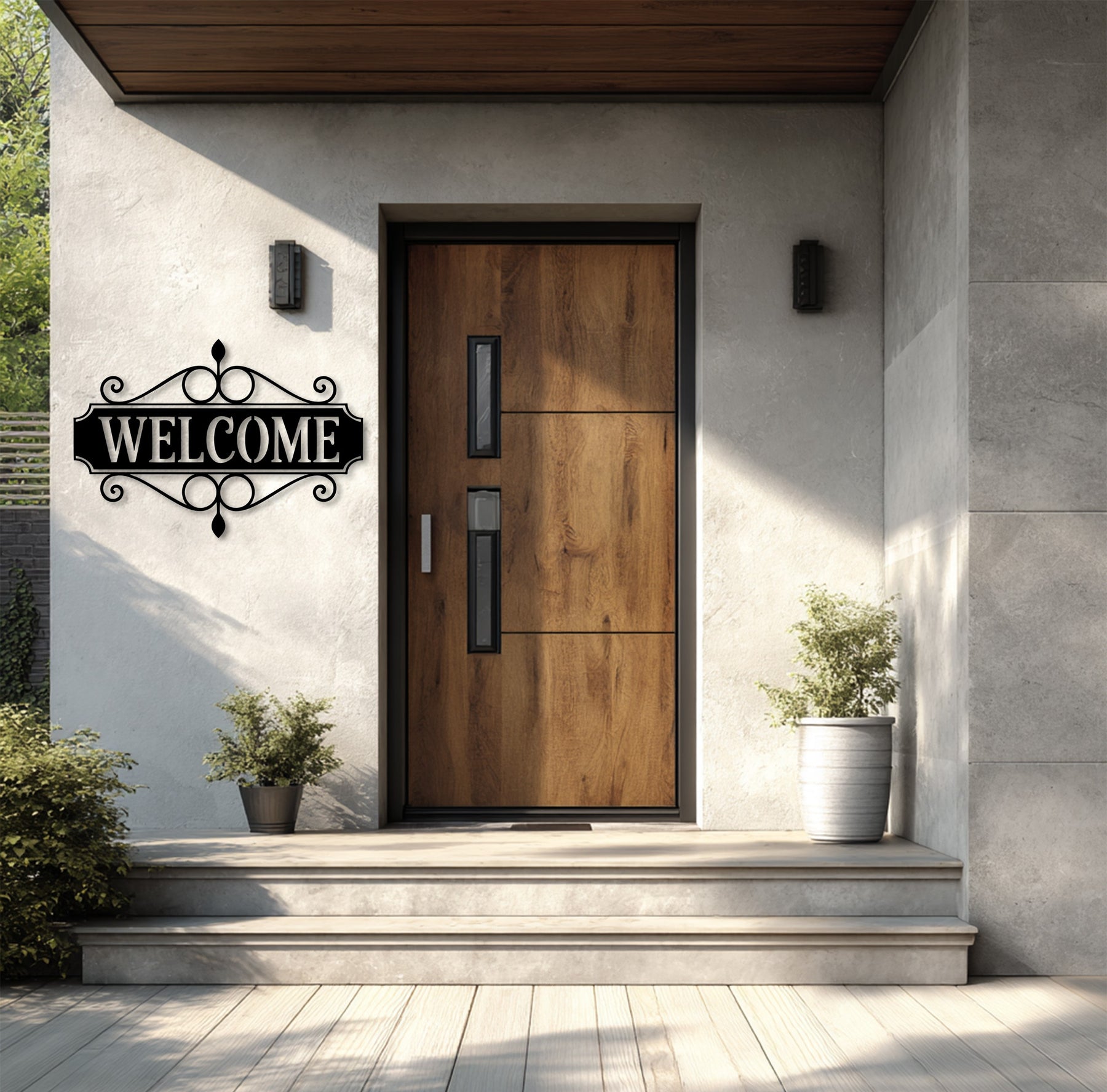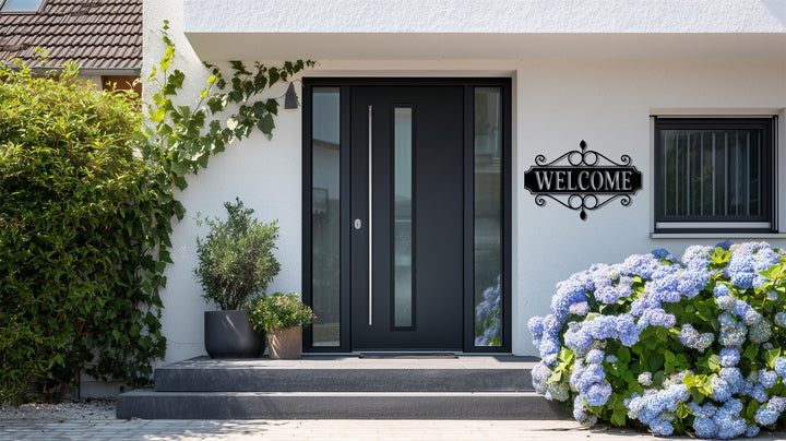 Black metal welcome sign for front door