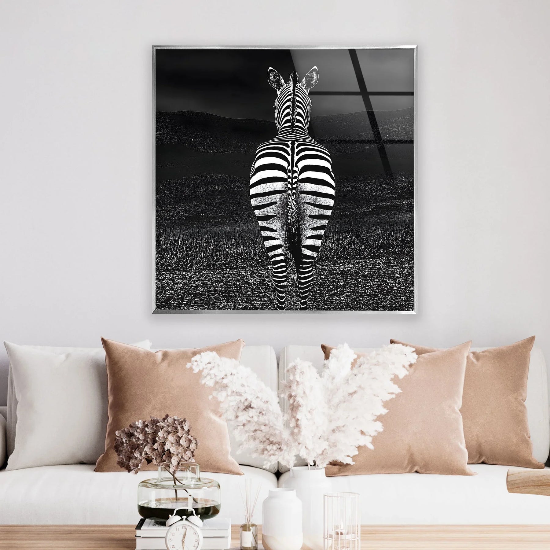 Zèbre de vue arrière Art Mural En Verre–Élégance minimaliste avec une touche sauvage