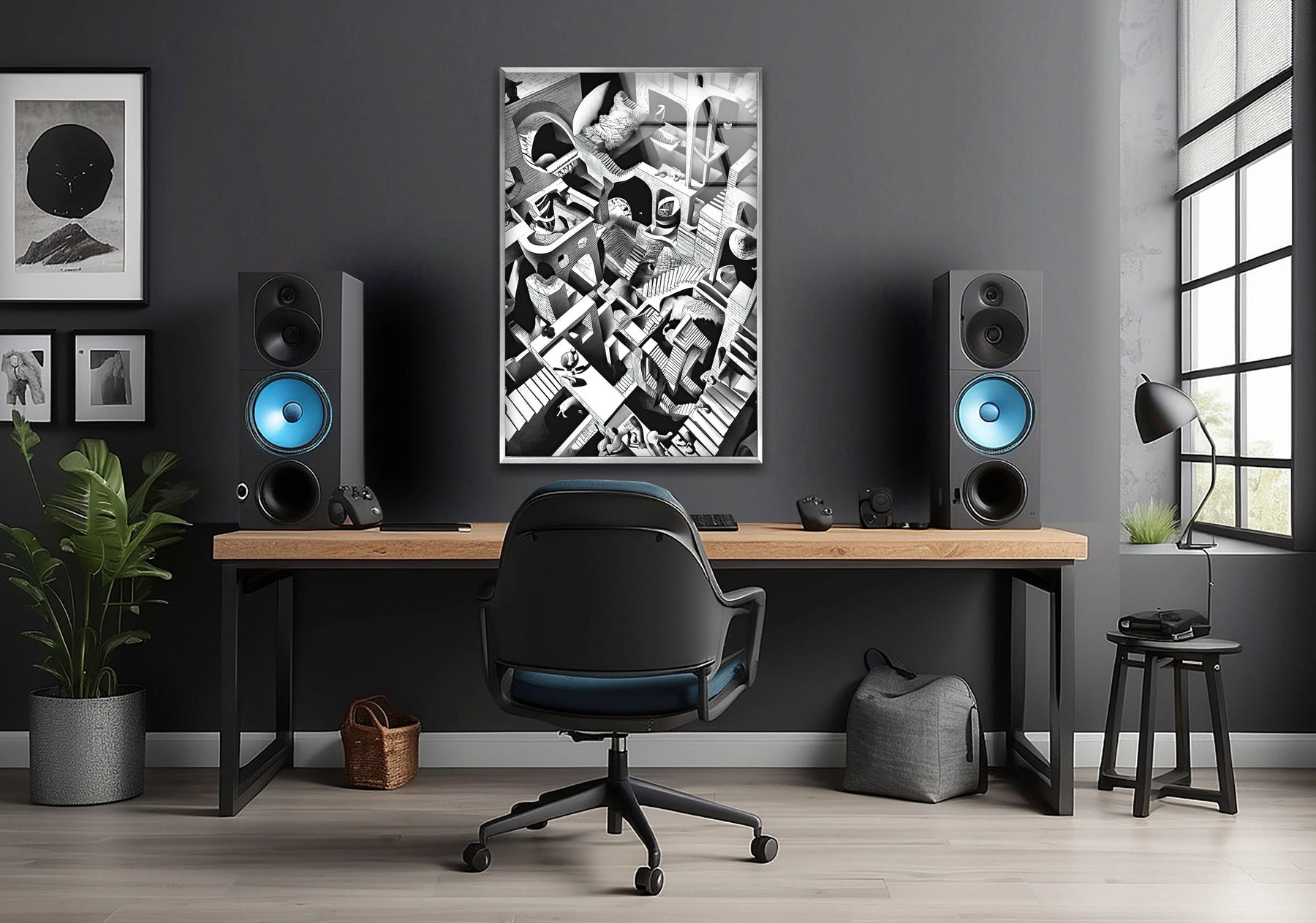 Conçu avec précision et un souci du détail saisissant, ce Art Mural En Verre Idéal pour ajouter une touche d'art surréaliste à votre espace de vie, votre bureau ou votre atelier créatif. Son design saisissant en noir et blanc crée profondeur et mystère, parfait pour les amateurs d'art et les intérieurs modernes.