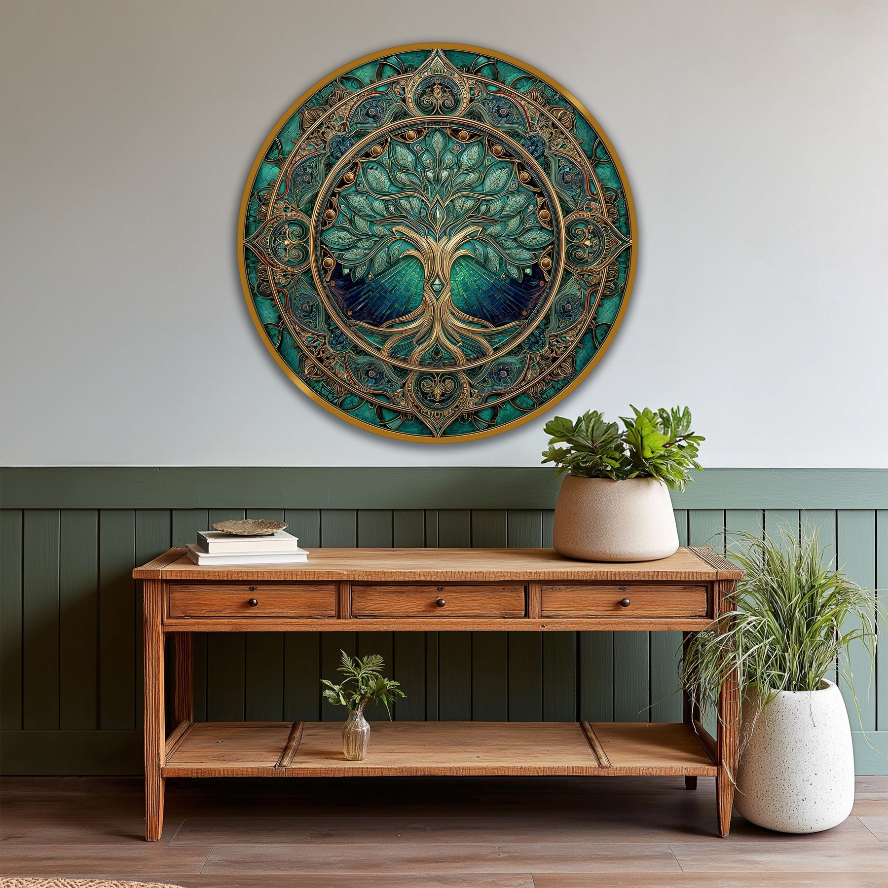 Œil du Gardien Céleste–Rond en Bois Orné Tableau Peinture à l’huile Art mural