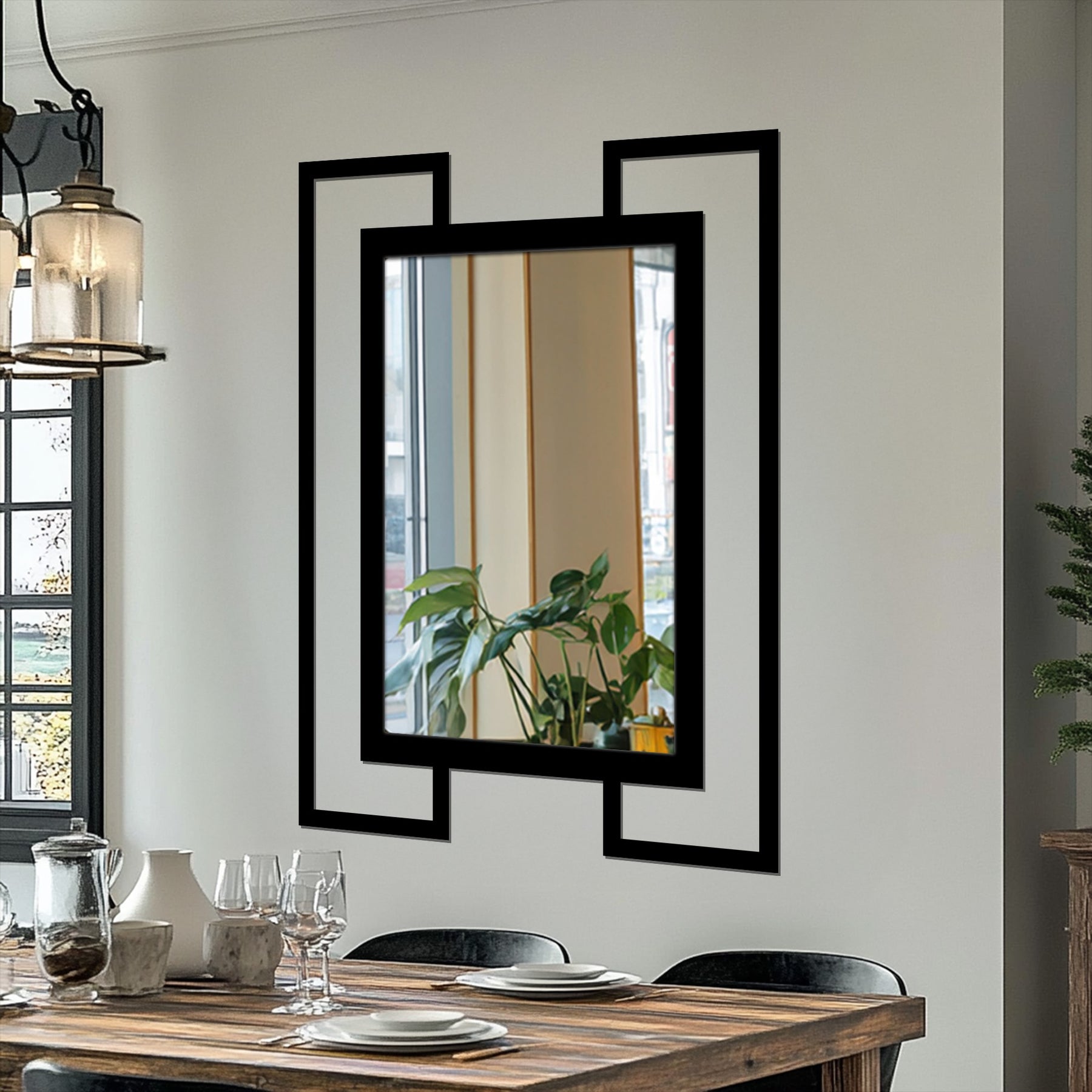 Géométrie à double cadre Décoration Murale Métal Miroir–Design rectangulaire noir moderne