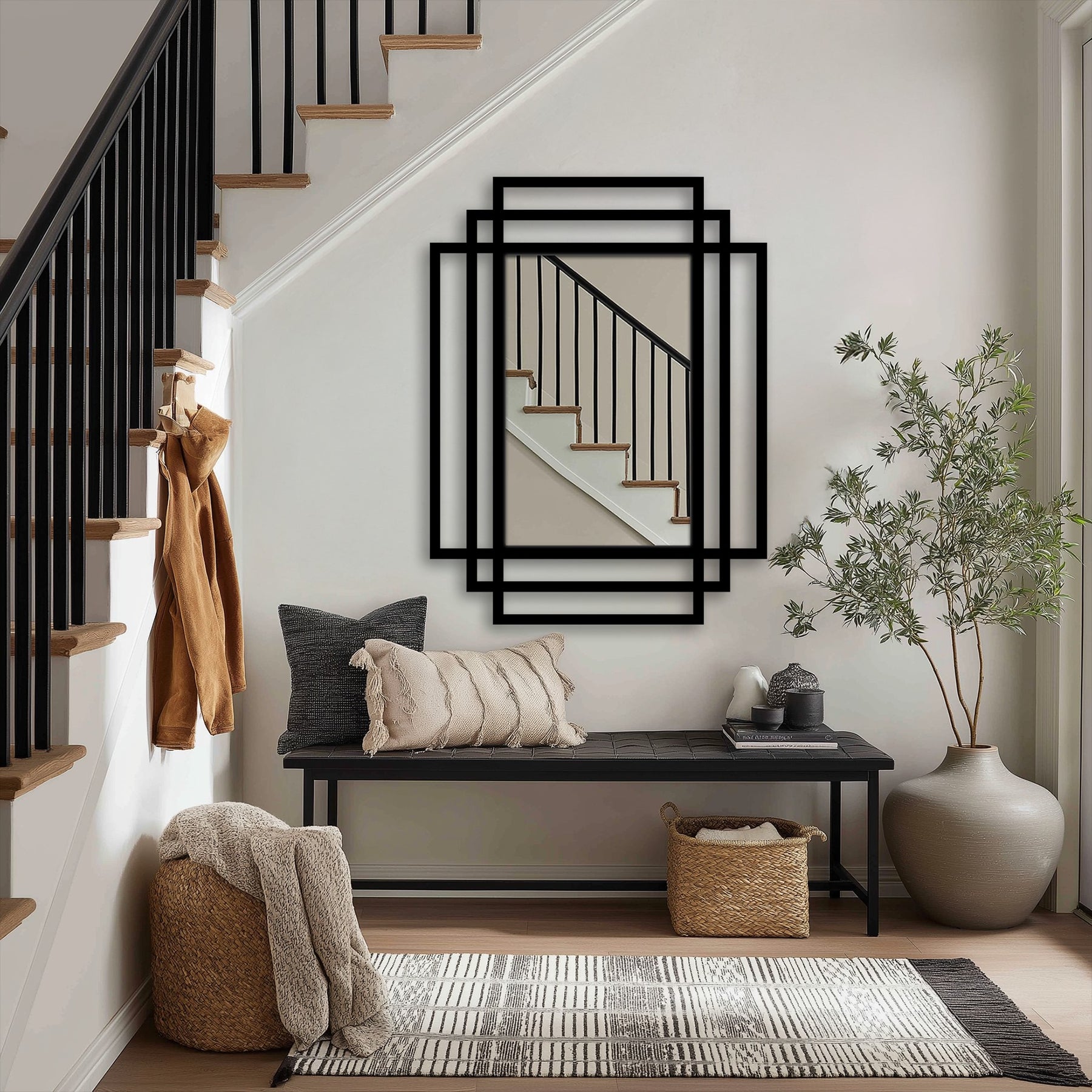 Cadres rectangulaires superposés Décoration Murale Métal Miroir–Design architectural noir moderne