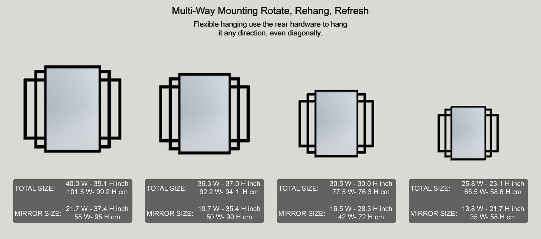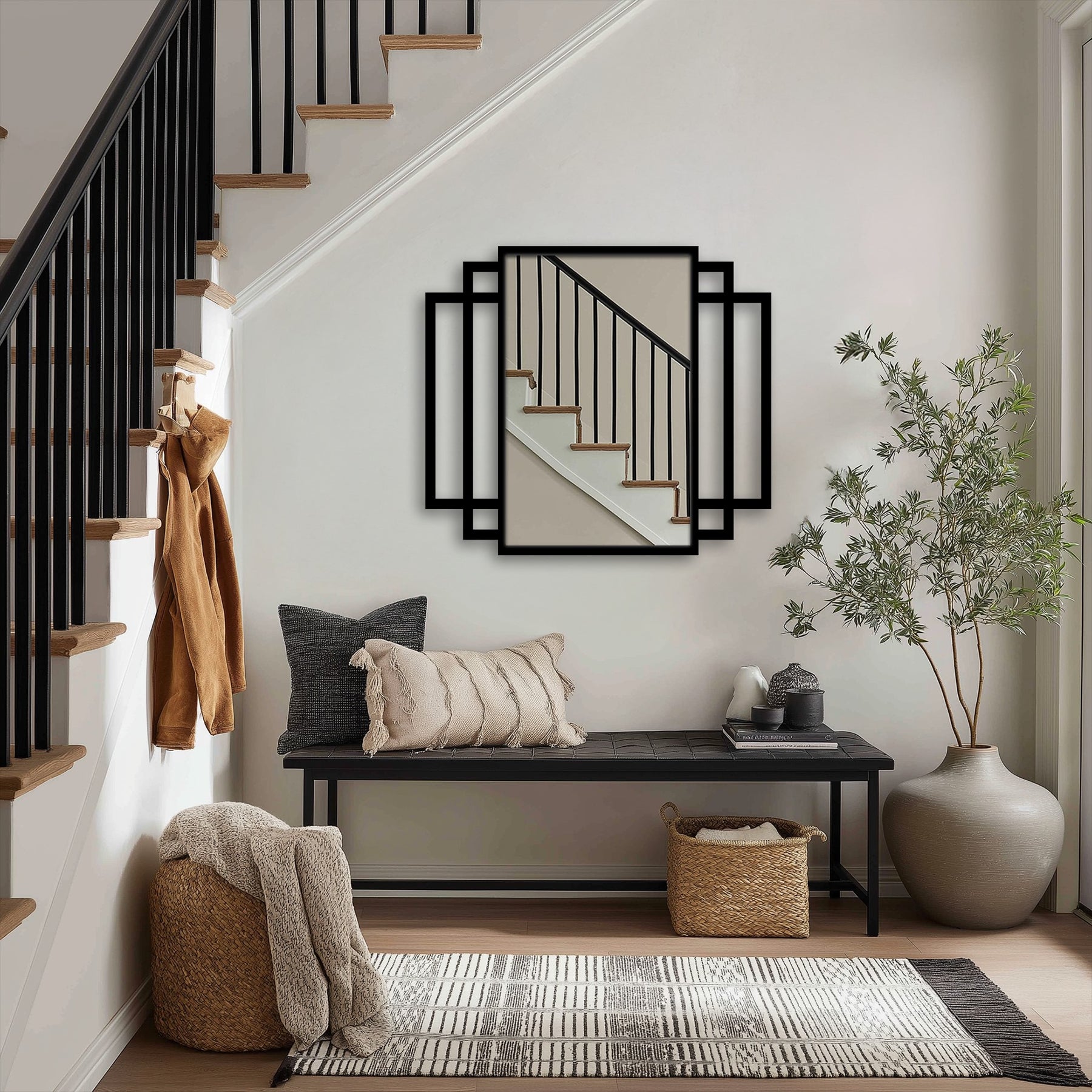 Cadre latéral superposé Décoration Murale Métal Miroir–Design rectangulaire noir moderne