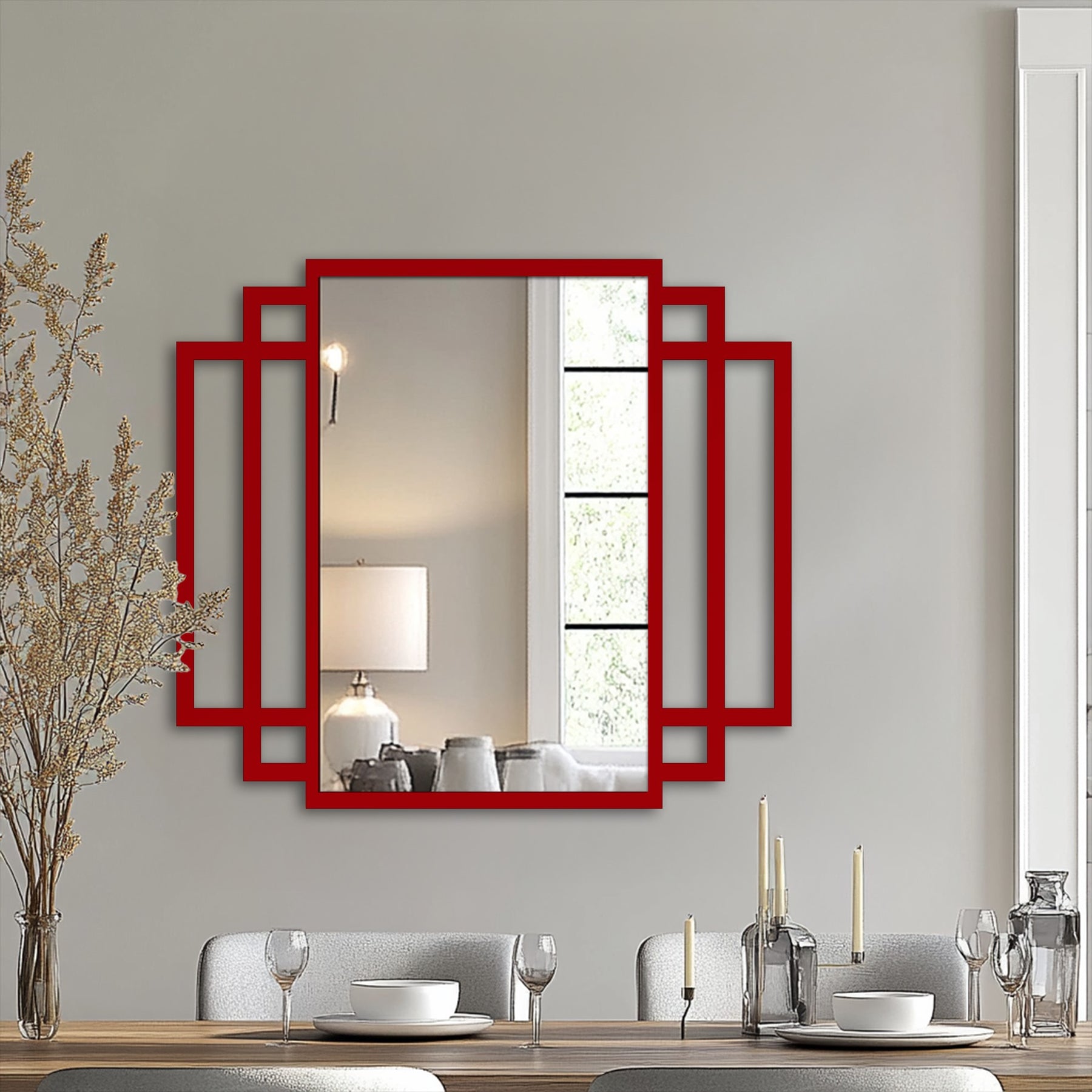 Ce cadre latéral superposé Décoration Murale Métal miroir Ce miroir rectangulaire audacieux est mis en valeur par des cadres métalliques décalés et étagés qui s'étendent de part et d'autre. La superposition des éléments crée profondeur et mouvement tout en préservant un équilibre architectural épuré, résolument moderne.