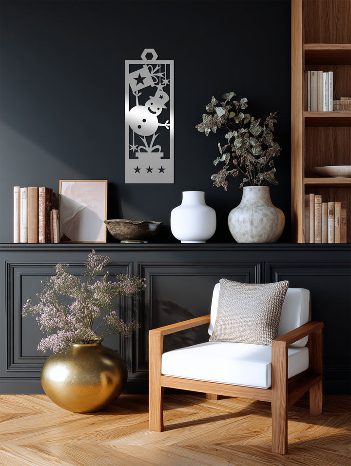 Pupazzo di neve gioioso - Stelle di Natale Decorazioni Murali in Metallo