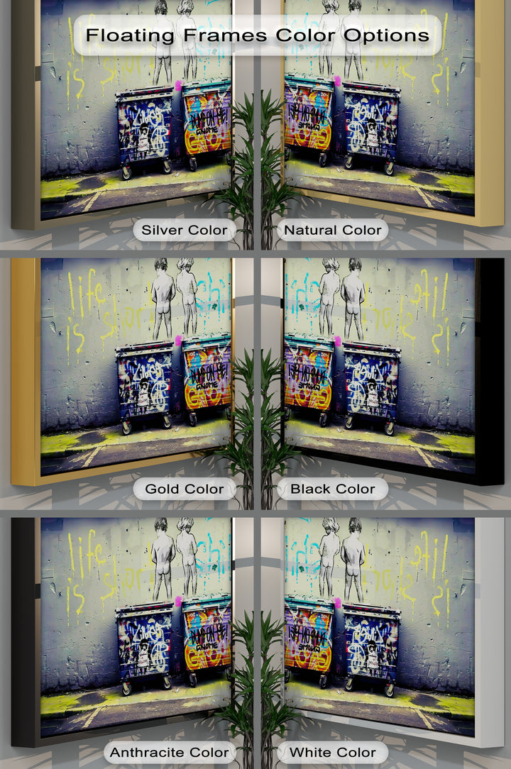 La nostra cornice Quadri su Tela Presenta una cornice sospesa spessa 3,5 cm (1,38 pollici), che crea un sorprendente effetto di profondità che impreziosisce la tua opera d'arte con un aspetto lussuoso, degno di una galleria d'arte. Disponibile in diverse opzioni di colore, la cornice aggiunge una definizione audace e un tocco moderno a qualsiasi spazio.