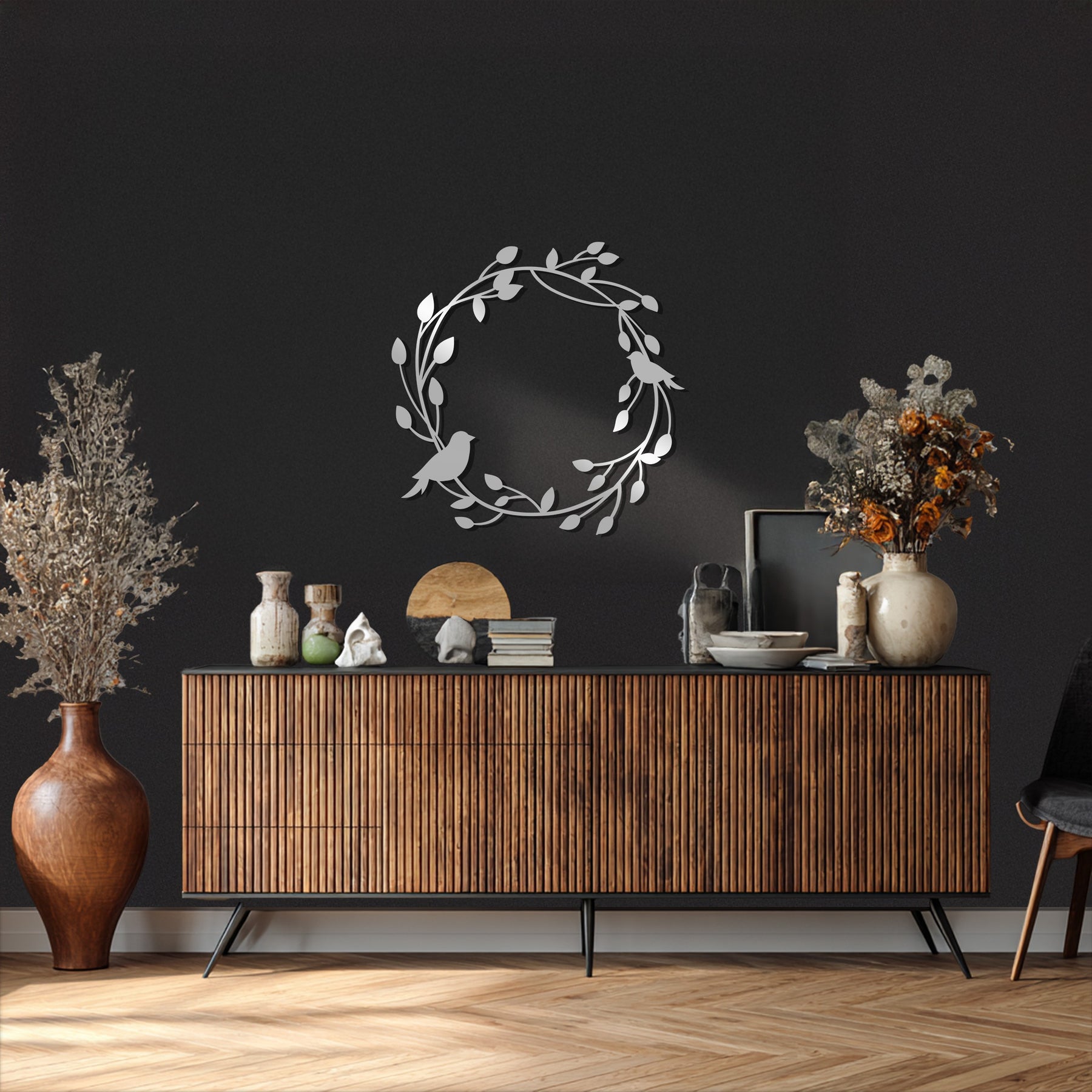 Armonia in volo – Ghirlanda di uccelli Decorazioni Murali in Metallo