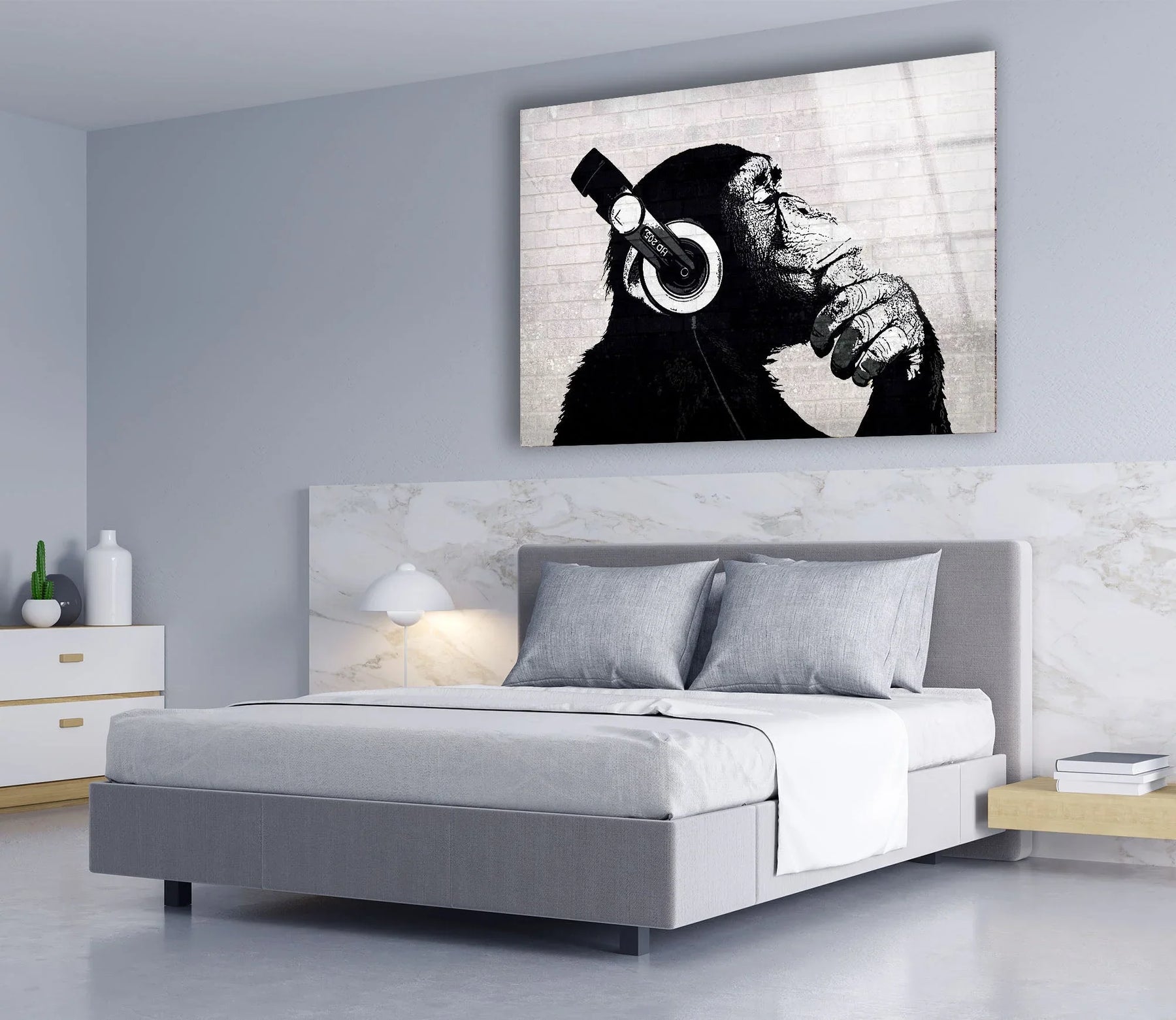 Cuffie da DJ Monkey di Banksy Quadri da Parete in Vetro