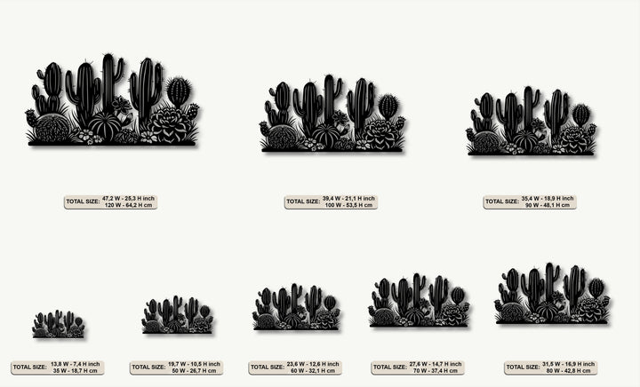 Expertly crafted, this durable metal decoration wall art presents a detailed desert cactus garden silhouette with a high-quality finish.