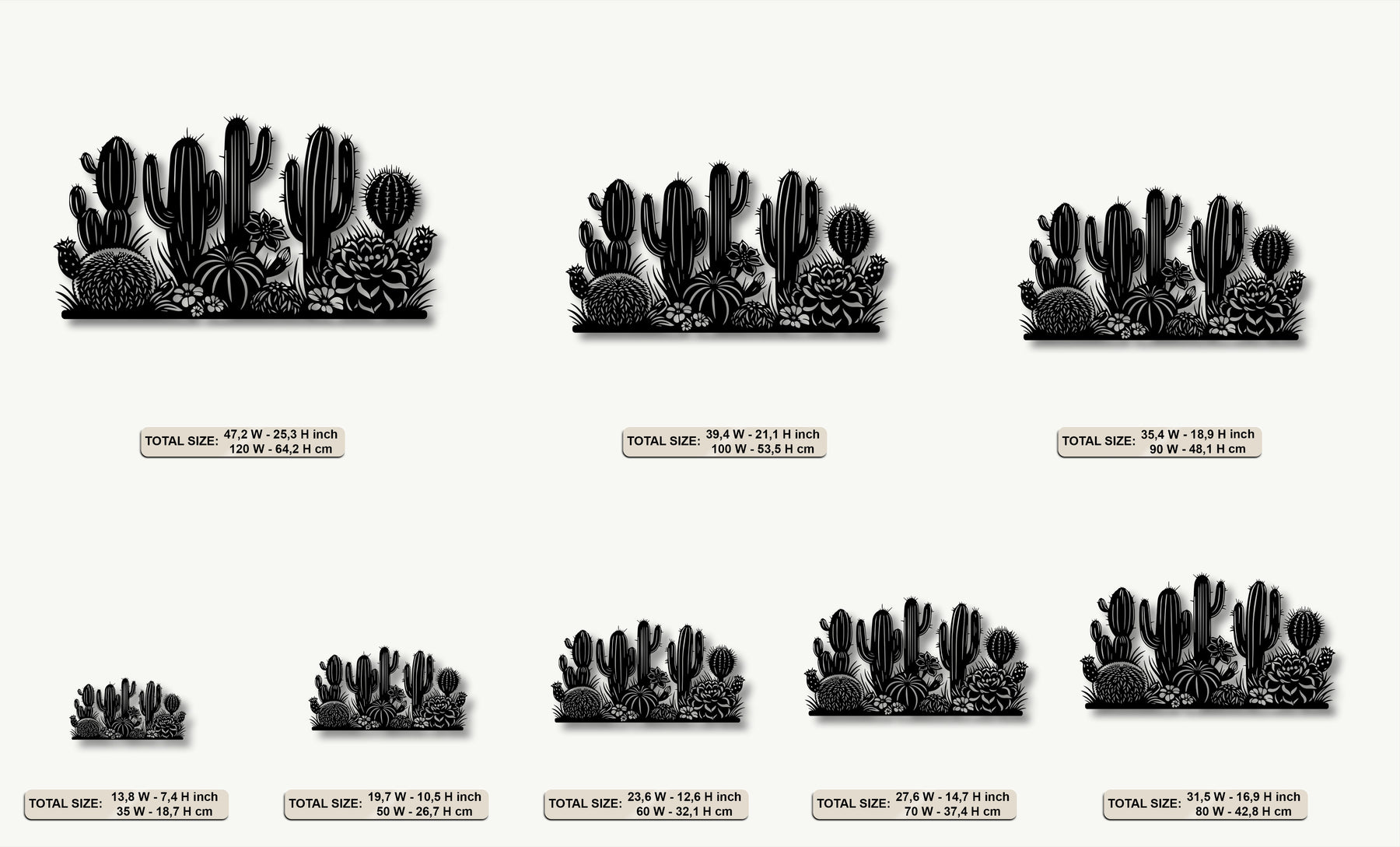 The intricate design of the desert cactus garden silhouette offers a lively sense of movement in this decorative metal art.
