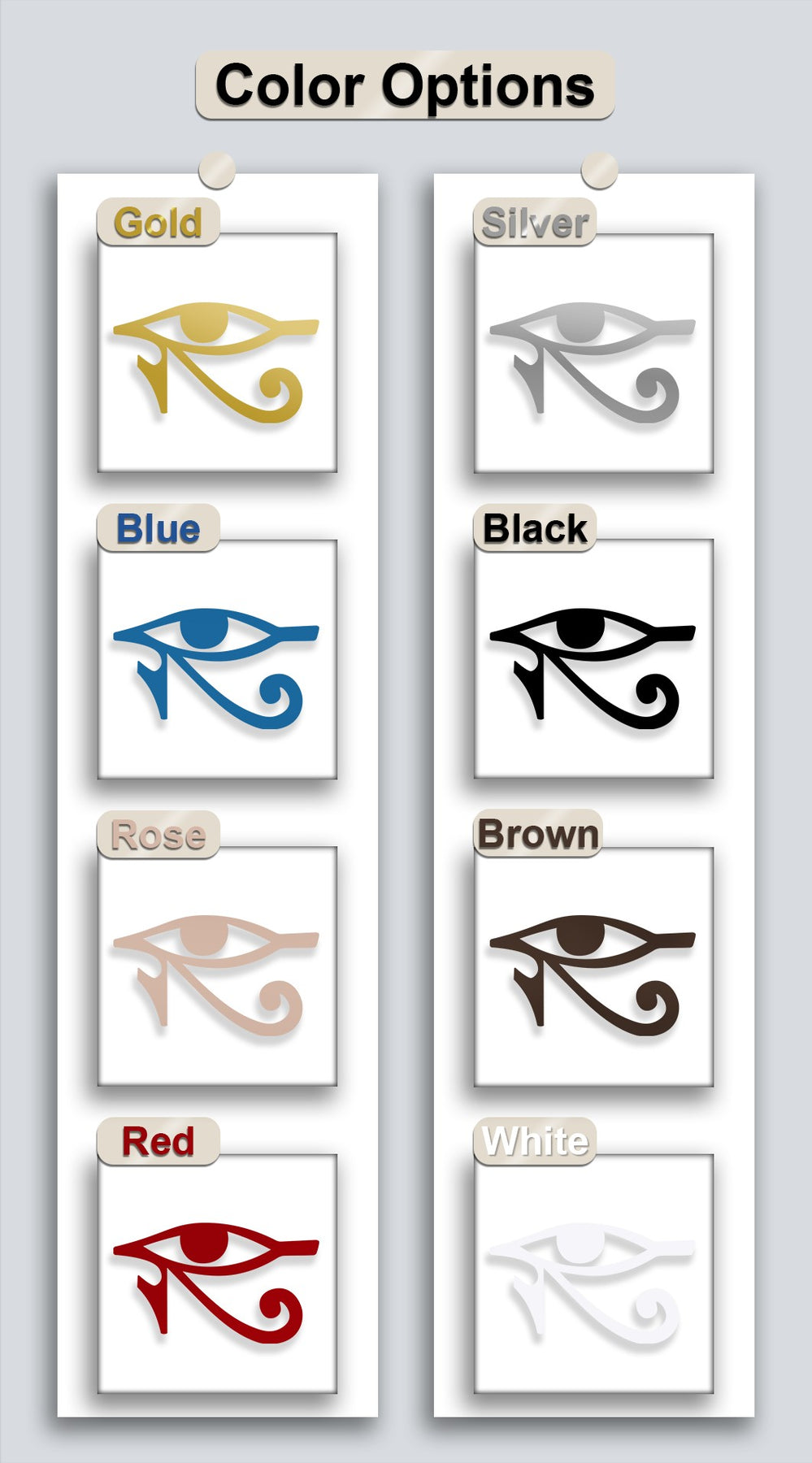 The prominent negative space of the black Eye of Horus symbol enhances this bold ancient Egyptian metal art for wall.