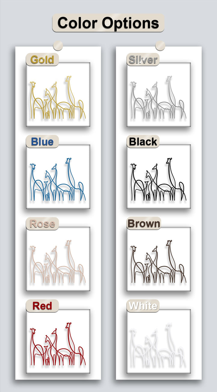 The sleek, durable metal wall decor features minimalist giraffe family line art, showcasing superior material quality.