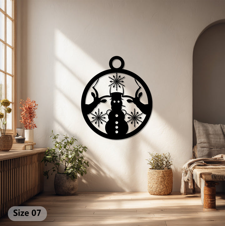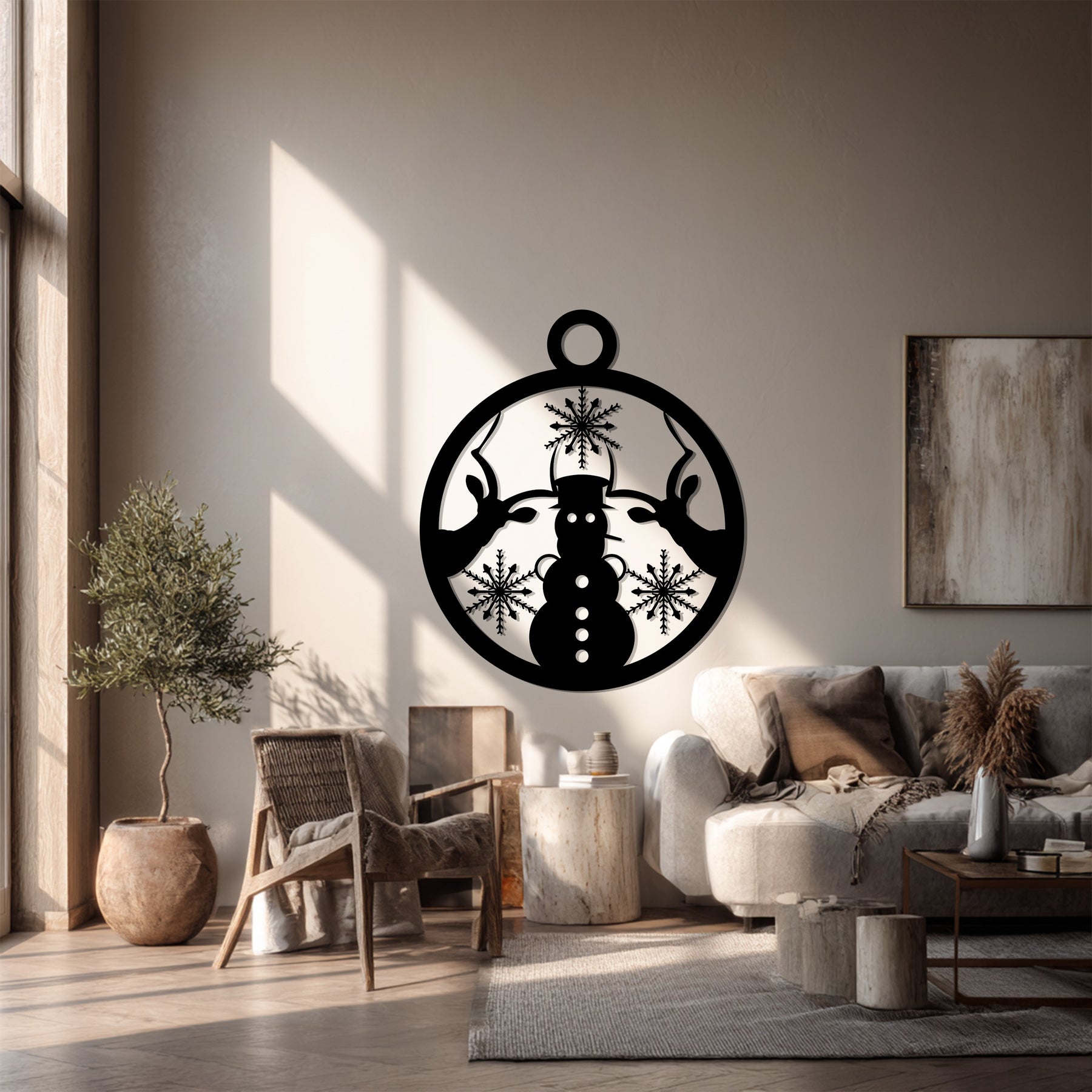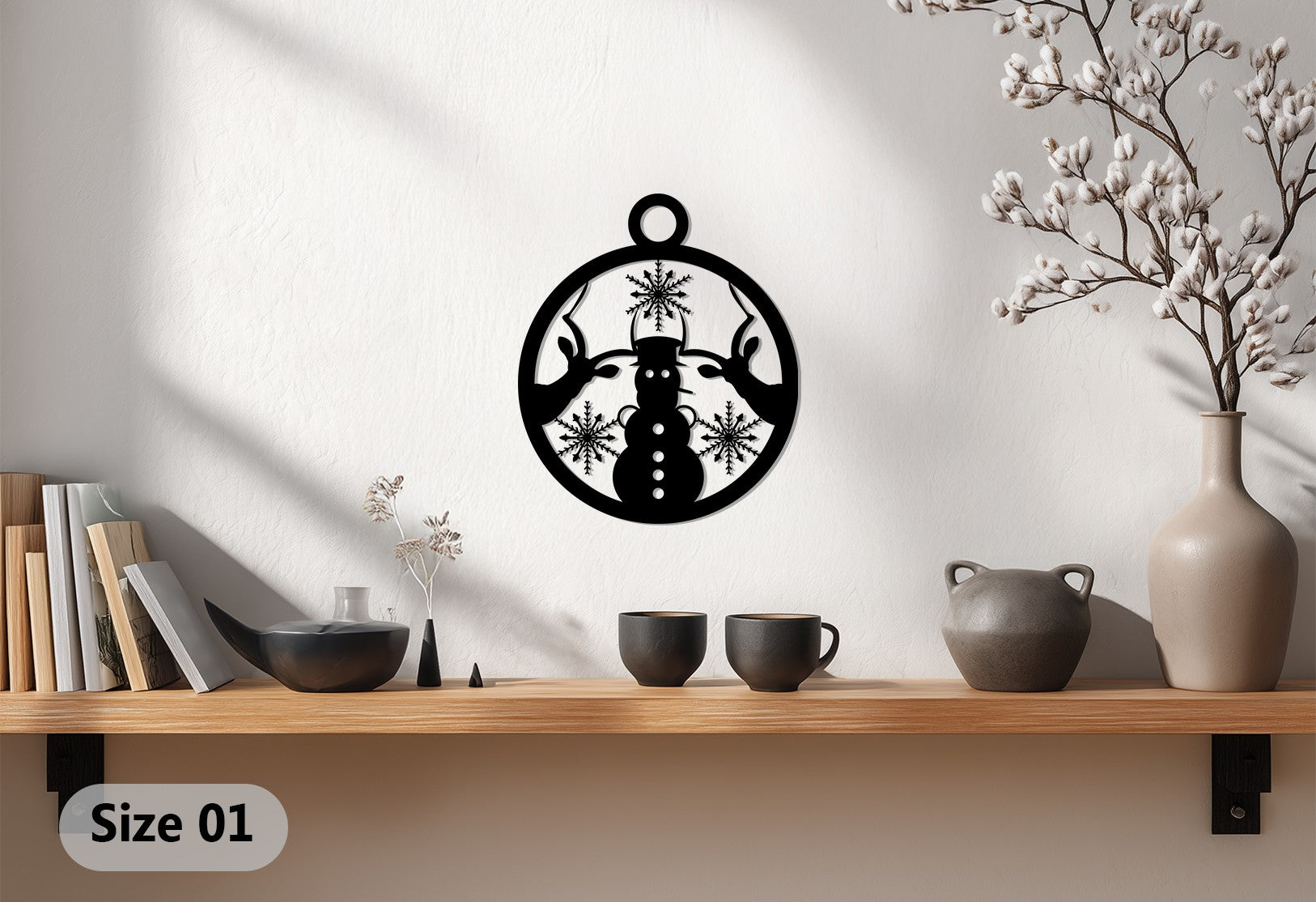 Celebra la bellezza dell'inverno con Abbraccio invernale Decorazioni Murali in MetalloQuesto pezzo festivo raffigura un gioioso pupazzo di neve circondato da eleganti renne e delicati fiocchi di neve, simboleggiando calore, armonia e la magia delle festività natalizie. La sua forma circolare lo rende il centrotavola perfetto per qualsiasi tema natalizio.
