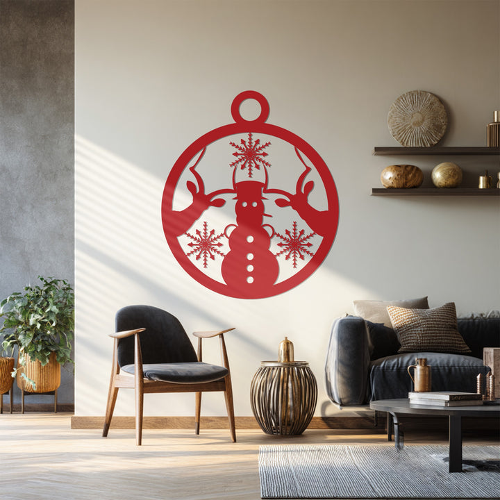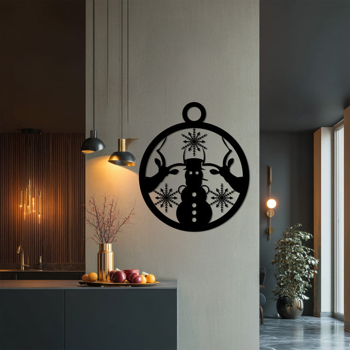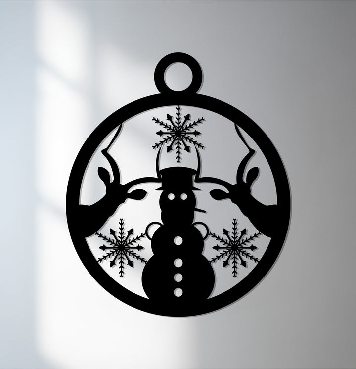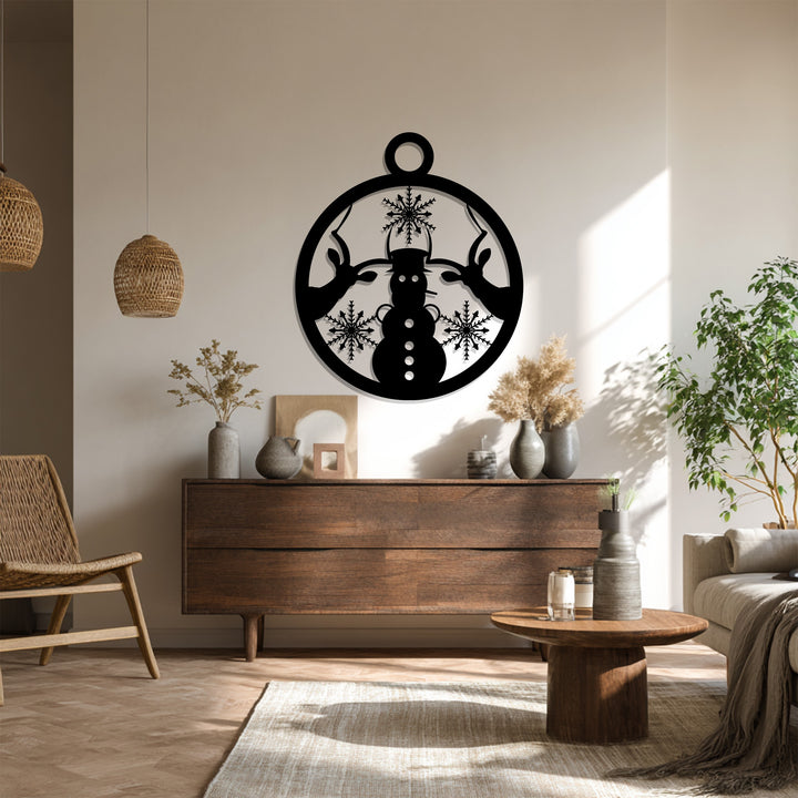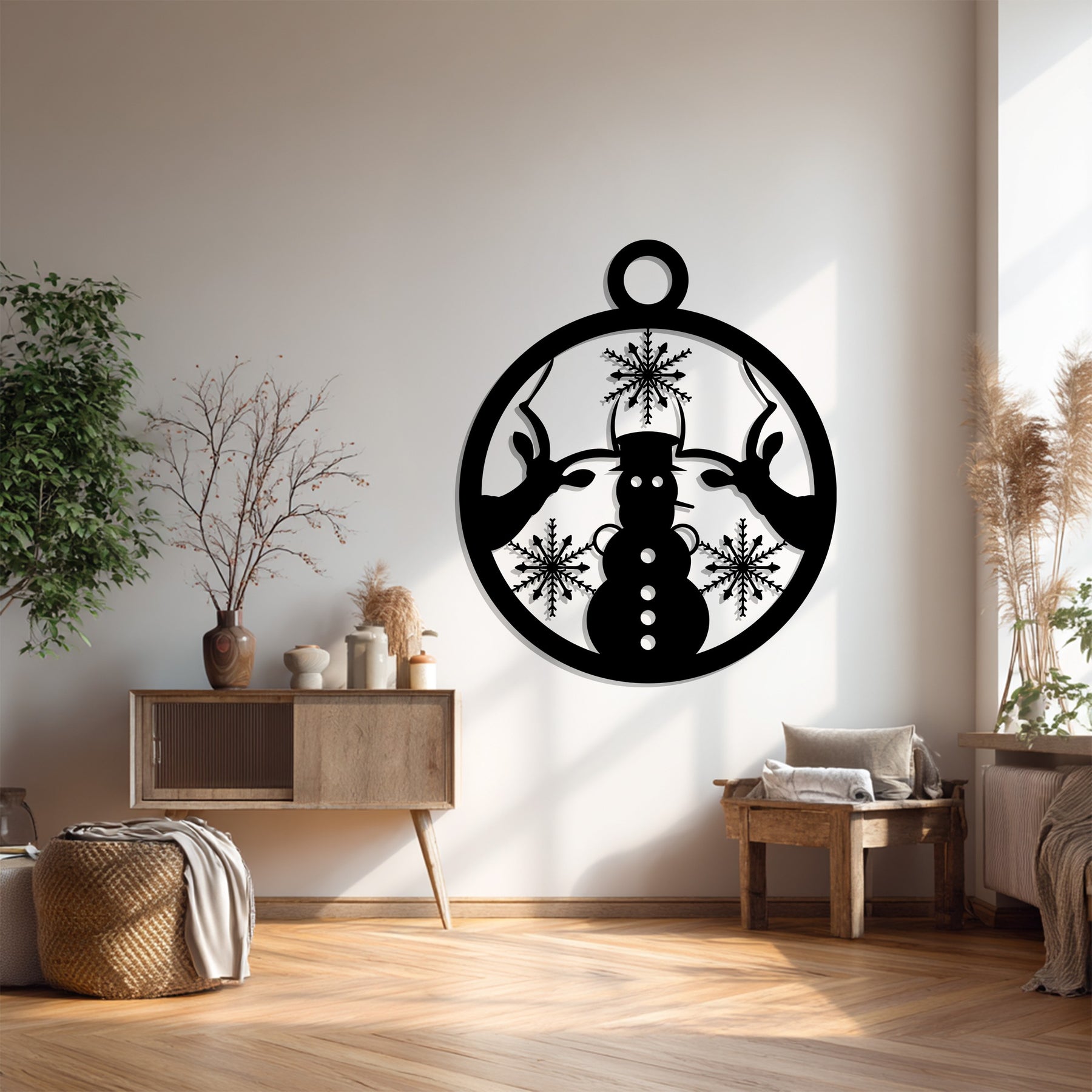Abbraccio invernale – Natale con pupazzo di neve e renne Decorazioni Murali in Metallo