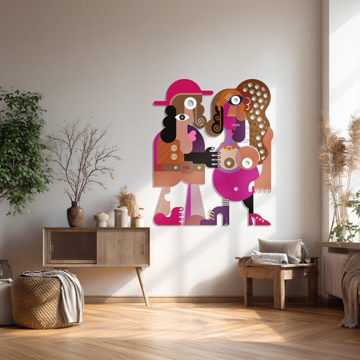 Abstract Couple Metal Wall Art – Colorful Modern Cubist Home Decor