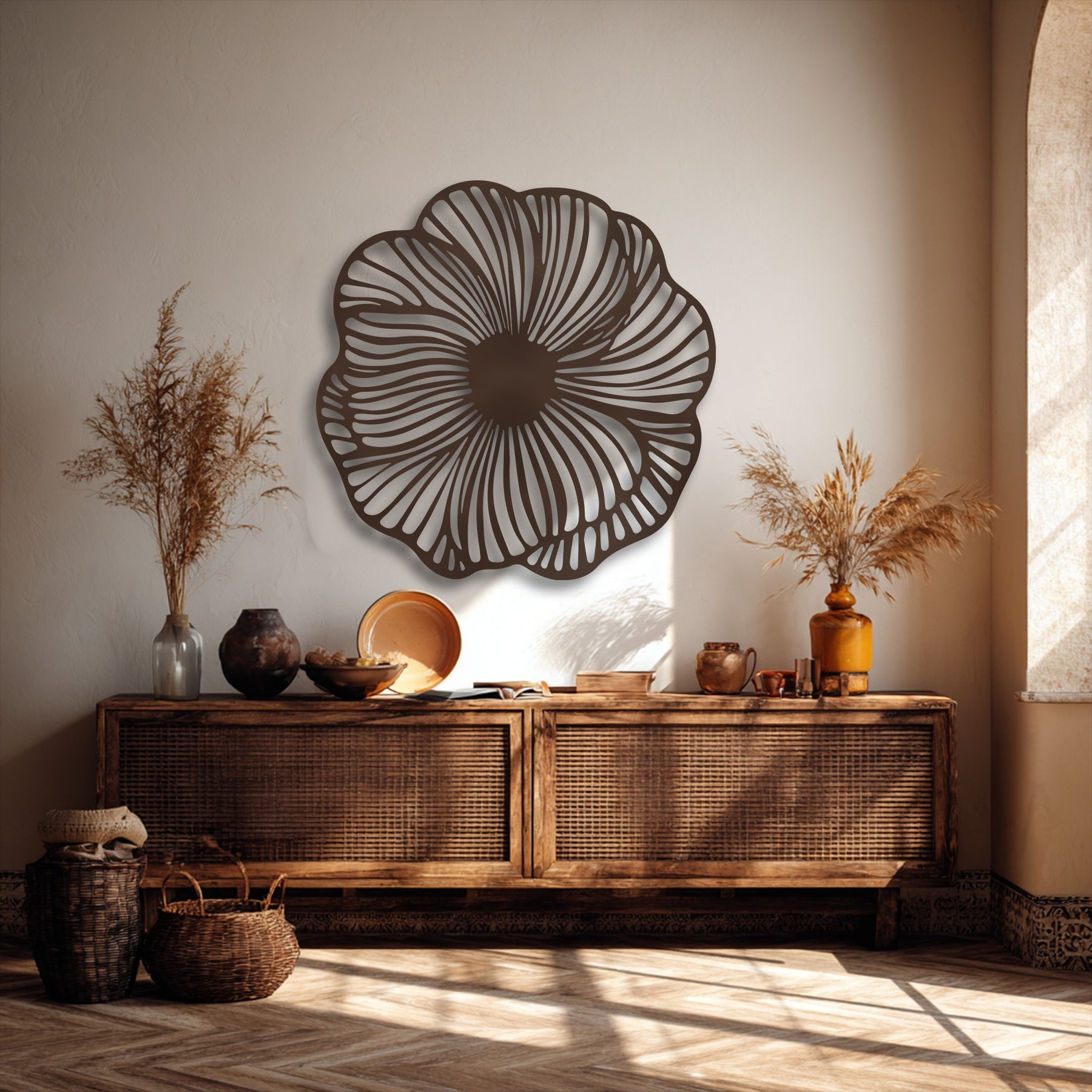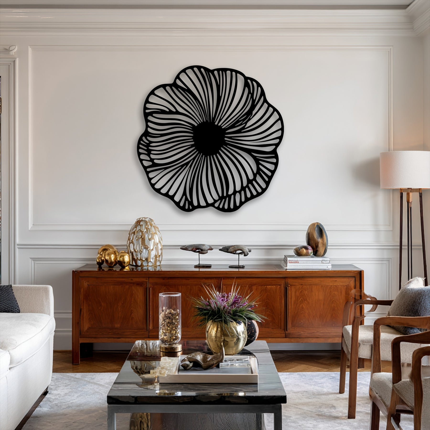 The organic curves and layered detailing create a sense of movement and harmony, drawing the eye inward while adding a soft, calming rhythm to your wall. Its sculptural appearance transforms simple surfaces into visually dynamic focal points.