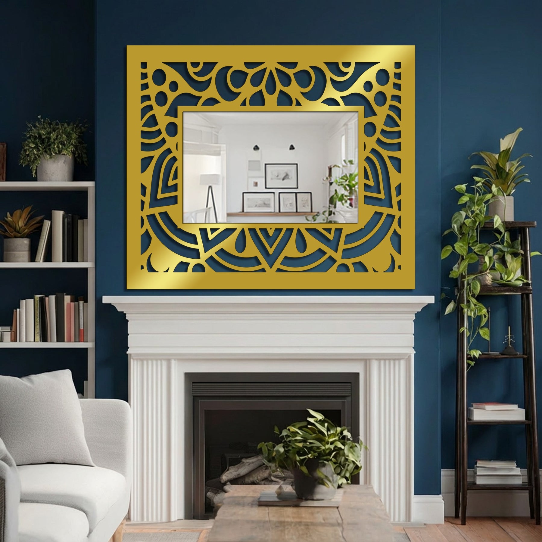 Abstract Mandala Frame Metal Floor Mirror – Modern Pattern Design