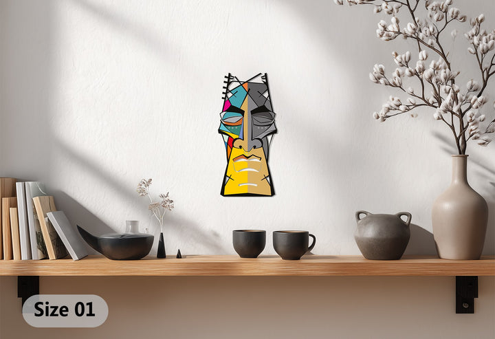 Abstract Tribal Face Metal Wall Art – Colorful Modern Geometric Decor