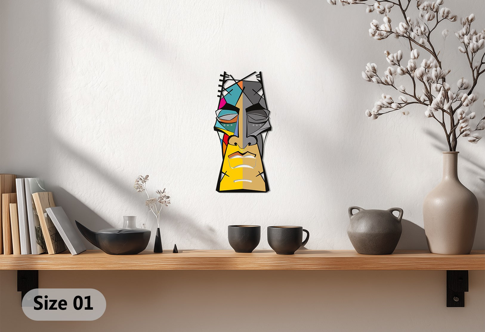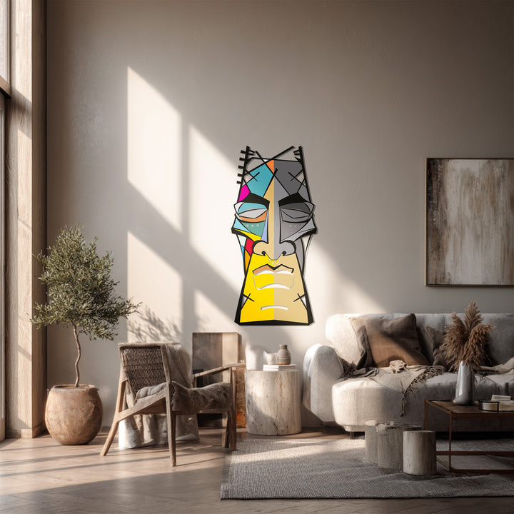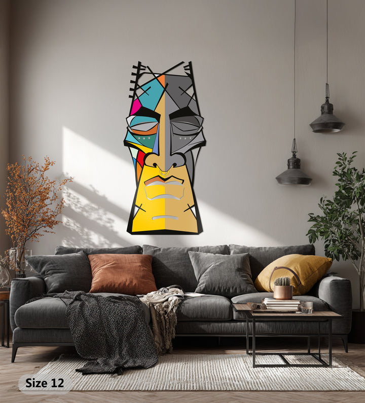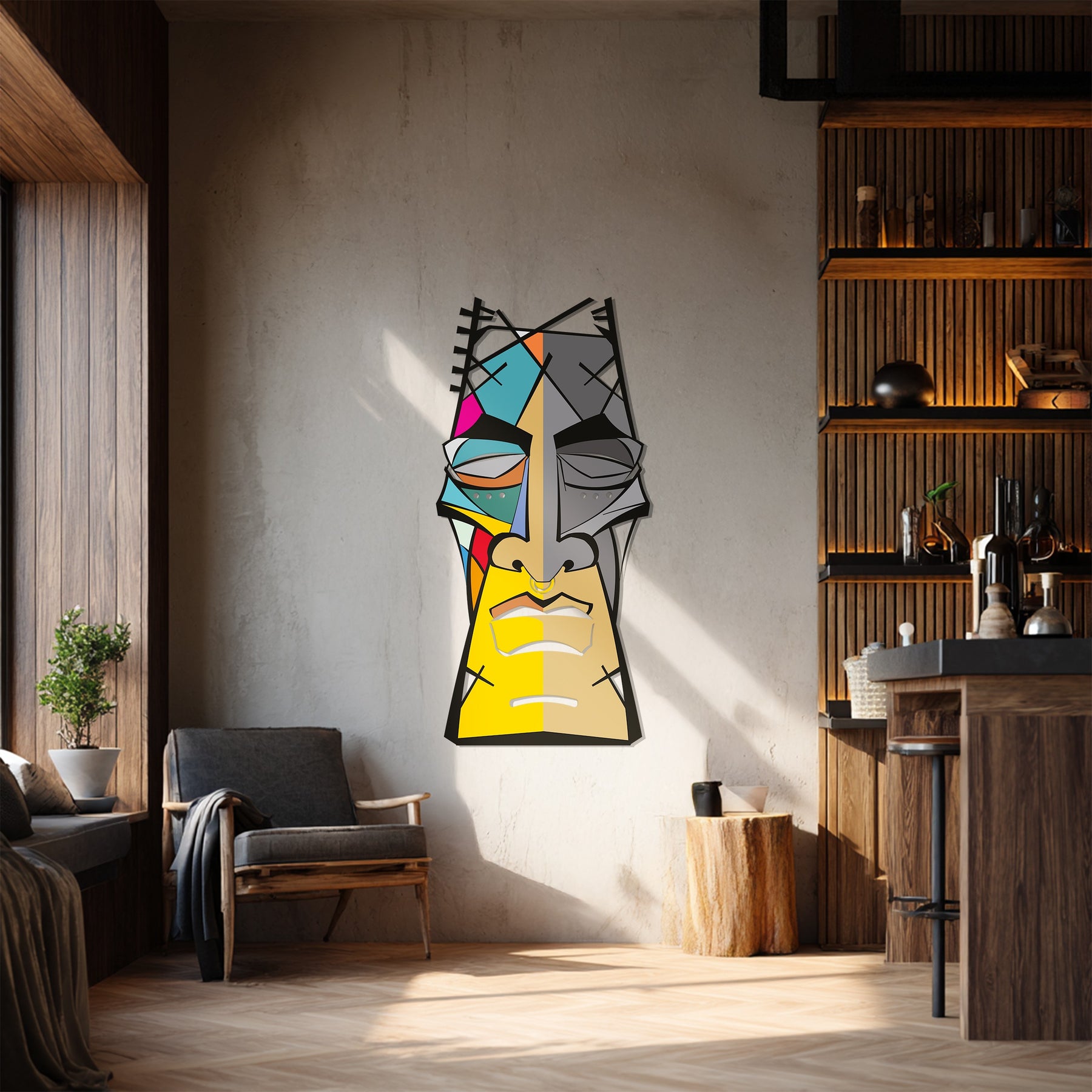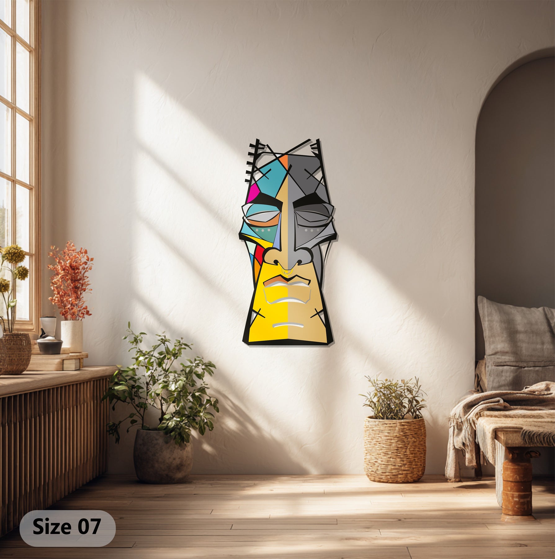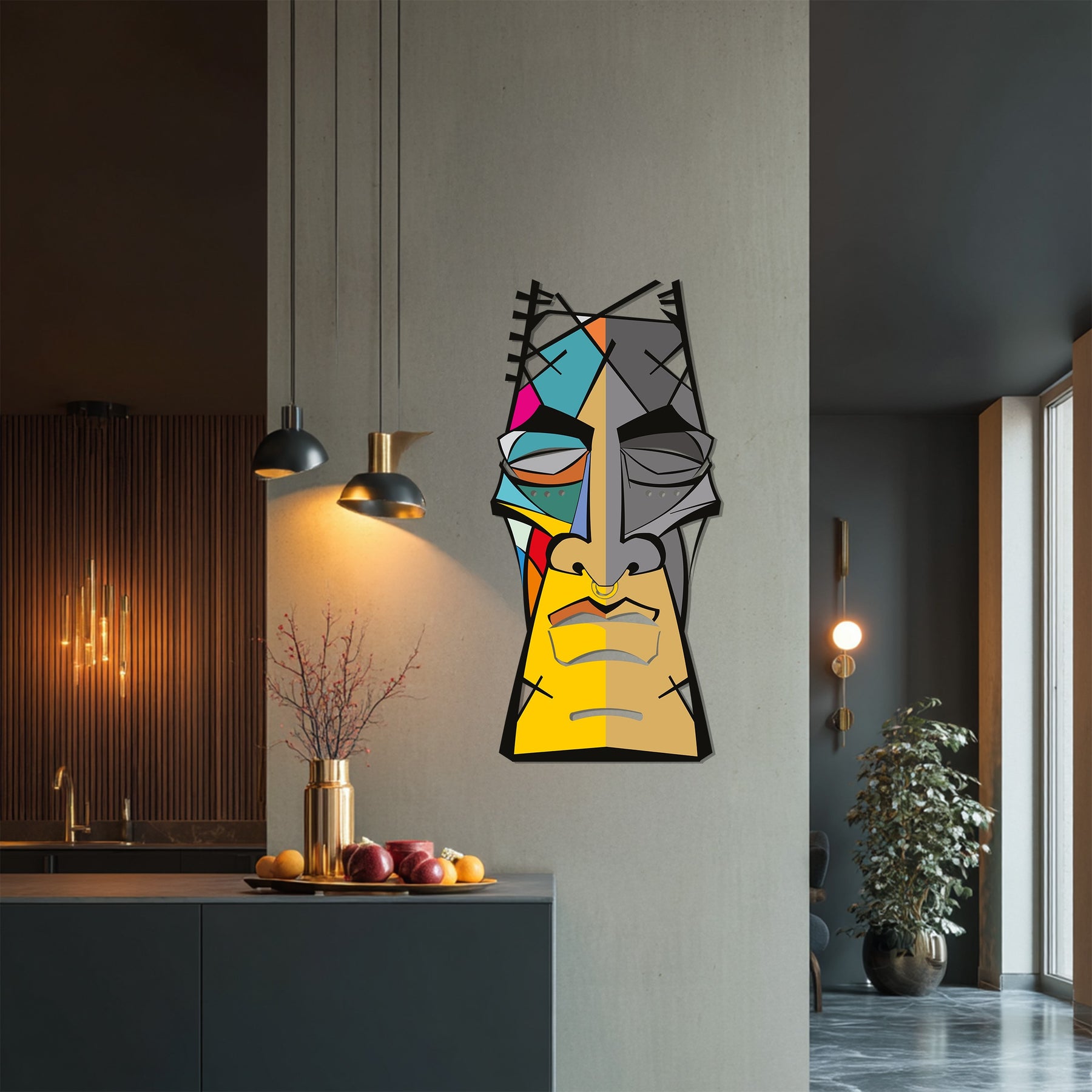 Transform your space with the Abstract Tribal Face Metal Wall Art, a bold fusion of modern geometric art and tribal symbolism. This striking piece combines vivid yellow, gray, and turquoise tones with sharp Picasso-inspired lines, making it a powerful statement for any room. Perfect for those who love abstract face décor with cultural depth and modern flair.