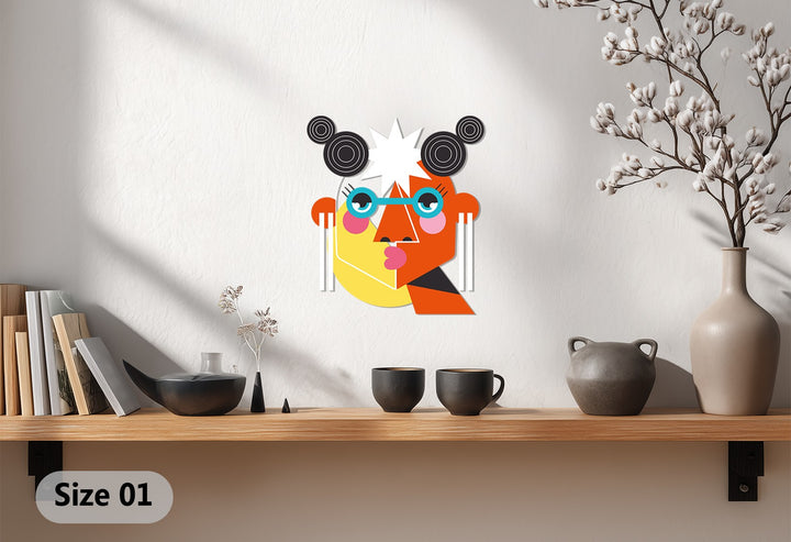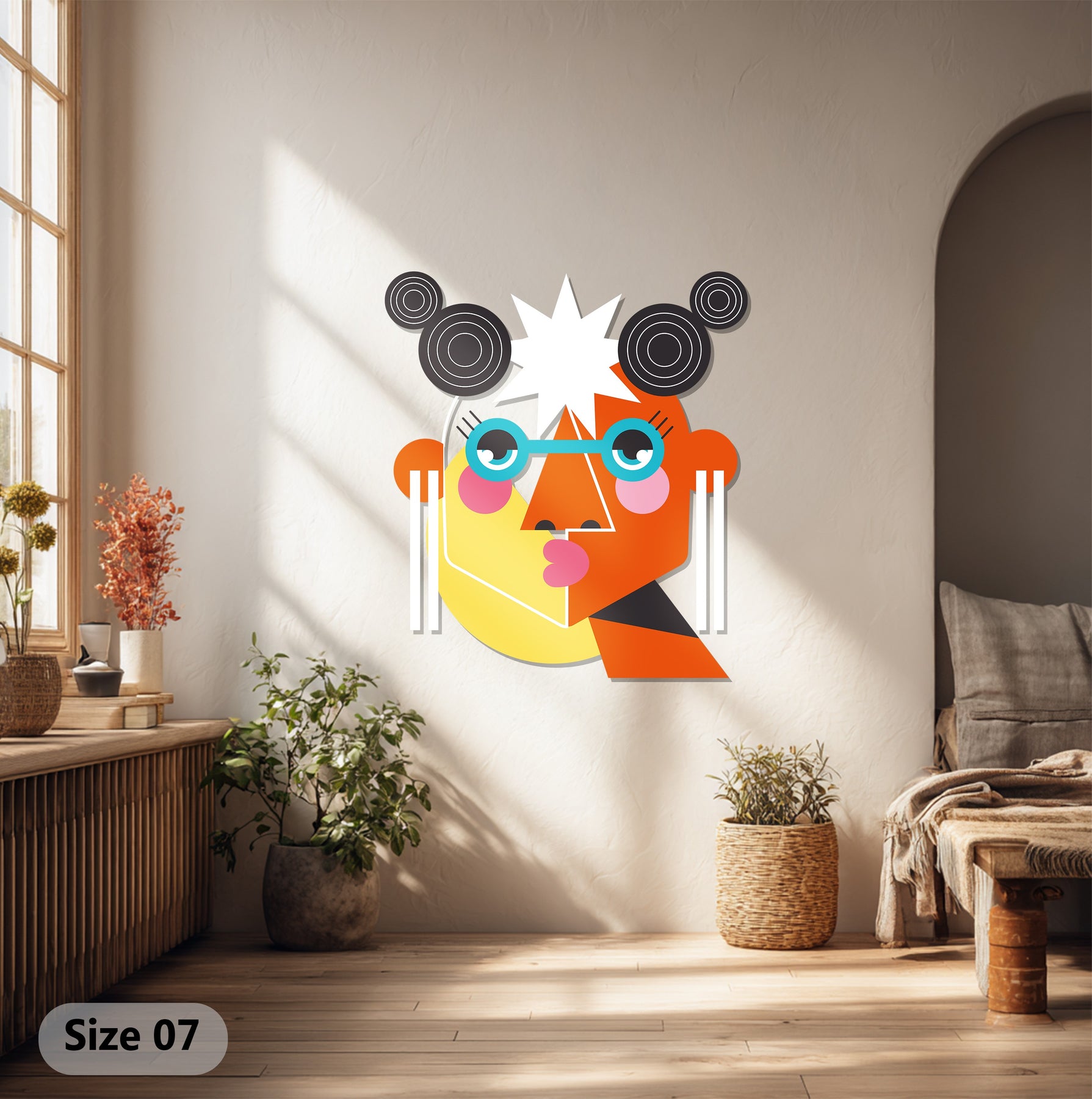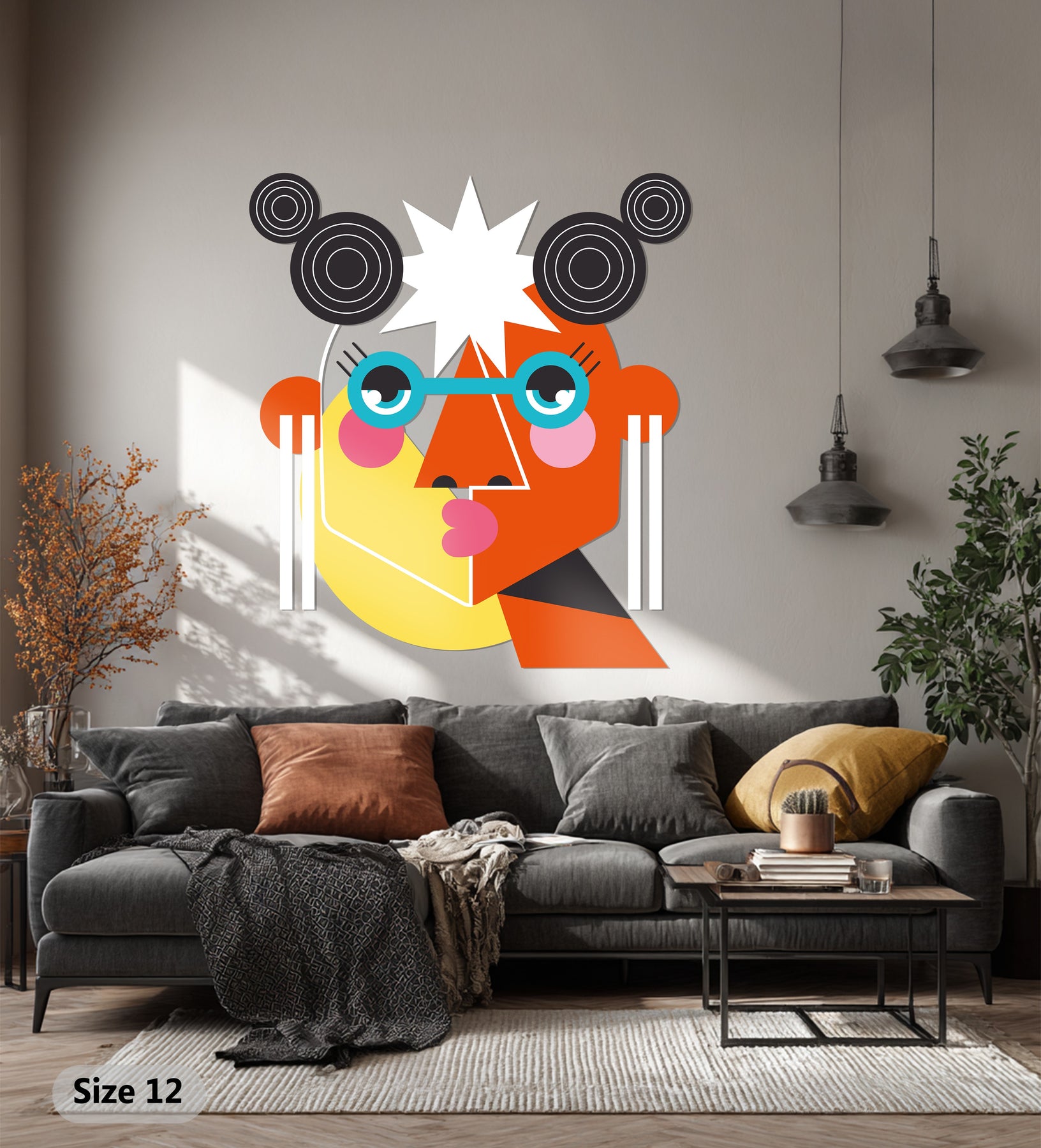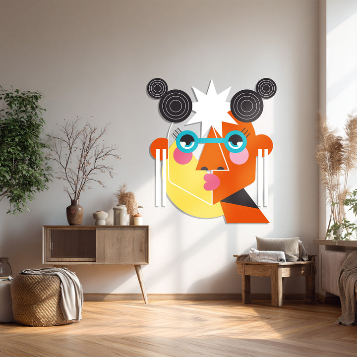 Bring life and creativity to your space with the Abstract Woman Metal Wall Art, a stunning fusion of modern cubism and geometric pop design. Bursting with vibrant shades of orange, yellow, pink, and black, this piece transforms any wall into an expressive art statement. The whimsical details — circular hair shapes, bright glasses, and playful symmetry — celebrate individuality and artistic freedom.