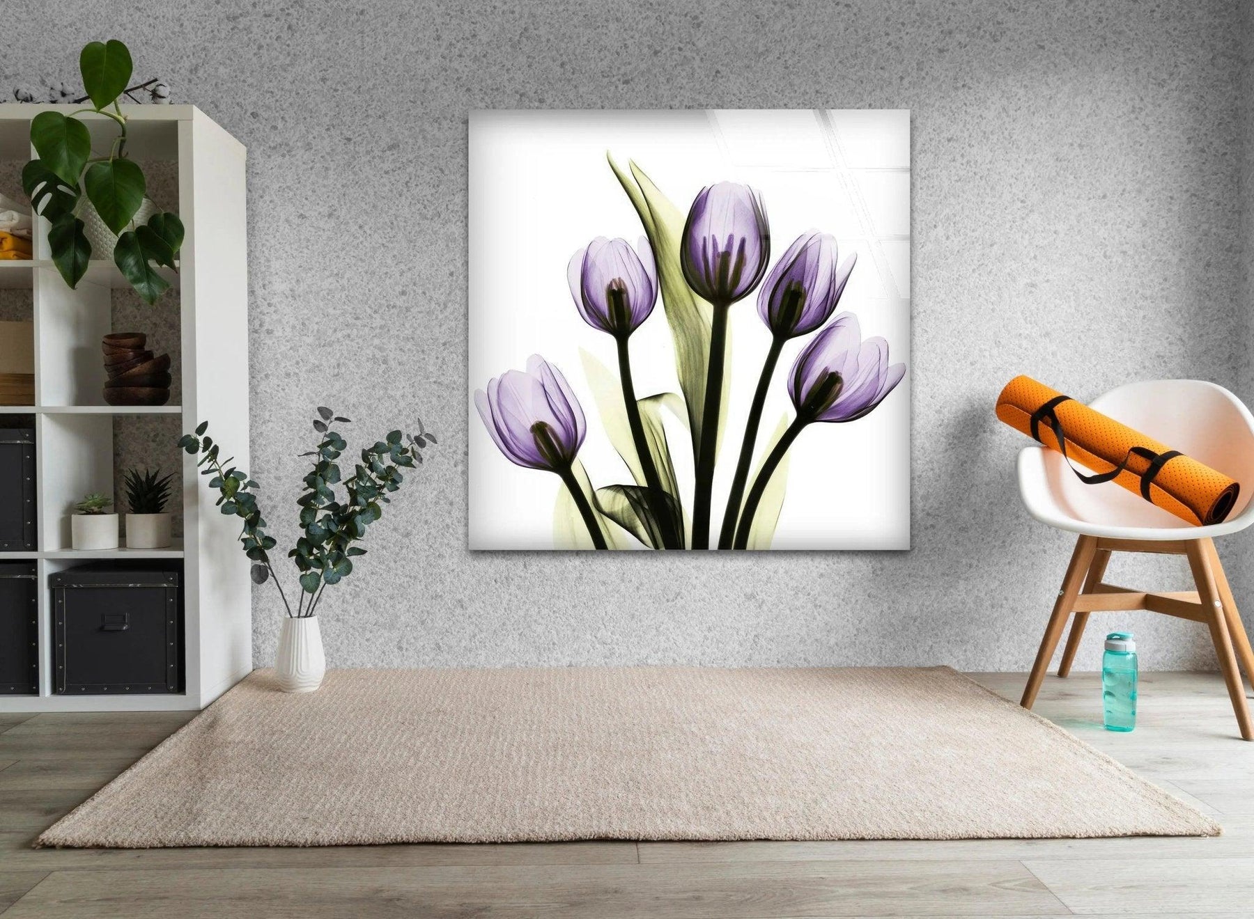 Crafted with precision using 8K High Quality UV Printing, this stunning Glass Wall Art brings the natural beauty of tulips to life with breathtaking detail. The calming tones and delicate design make it a versatile addition to any living room, bedroom, or workspace.