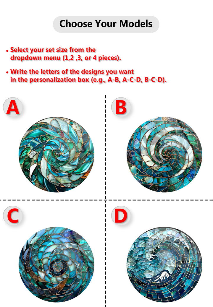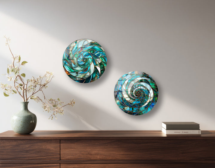 Aqua Spiral Essence – Abstract Ocean Mosaic Round Glass Wall Art Set
