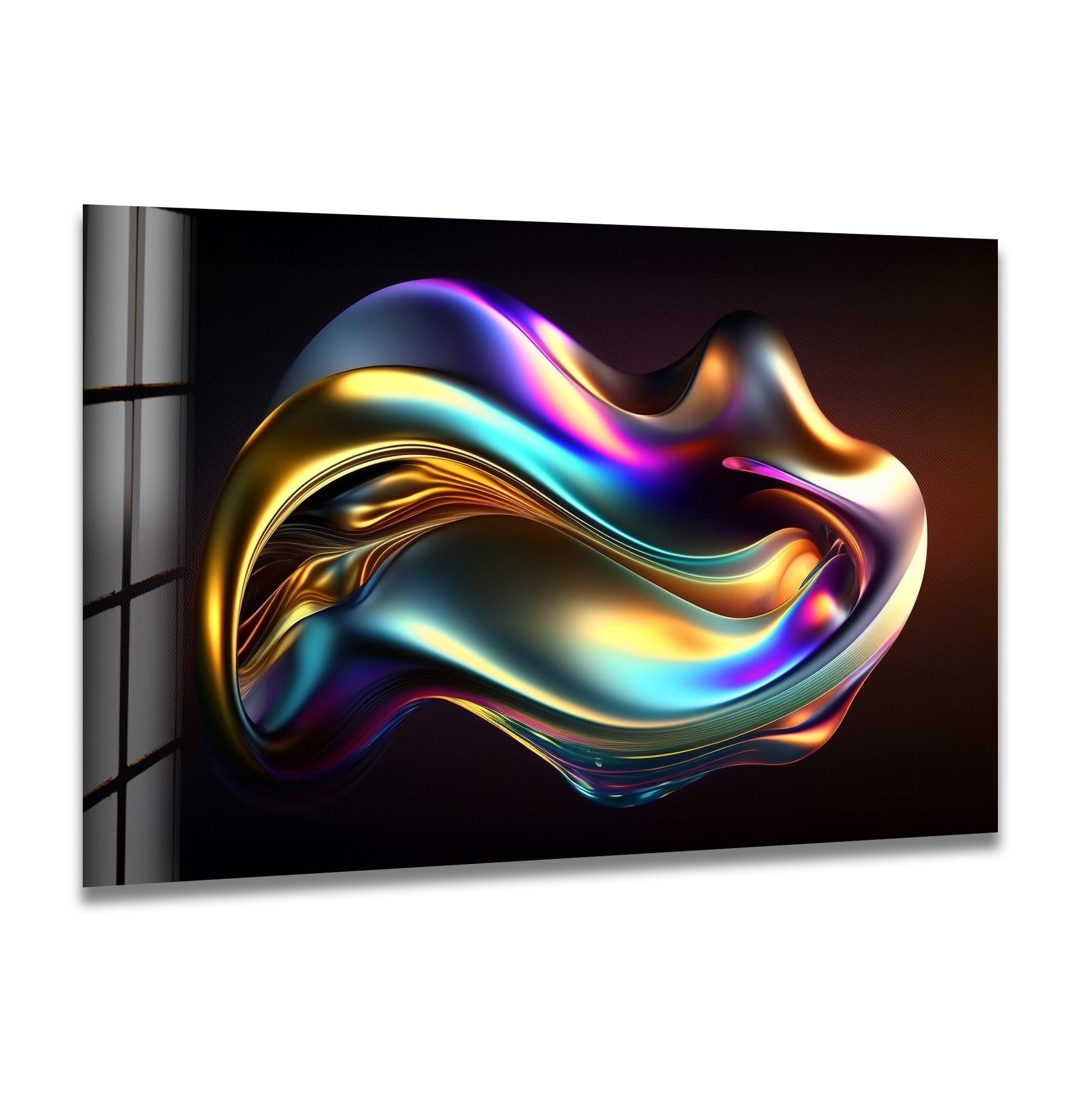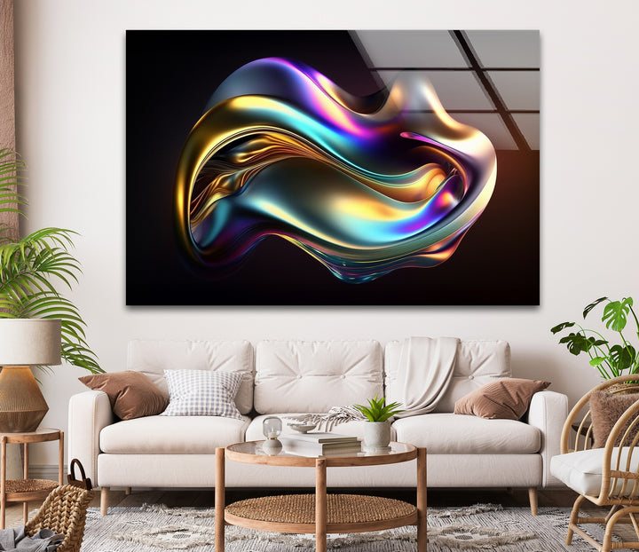Printed on ultra-gloss premium glass, every radiant highlight, color shift, and chrome reflection is captured with exceptional clarity. Ideal for living rooms, gaming setups, creative studios, bedrooms, and upscale commercial interiors, this piece adds pure visual energy—luxurious, dynamic, and instantly eye-catching.