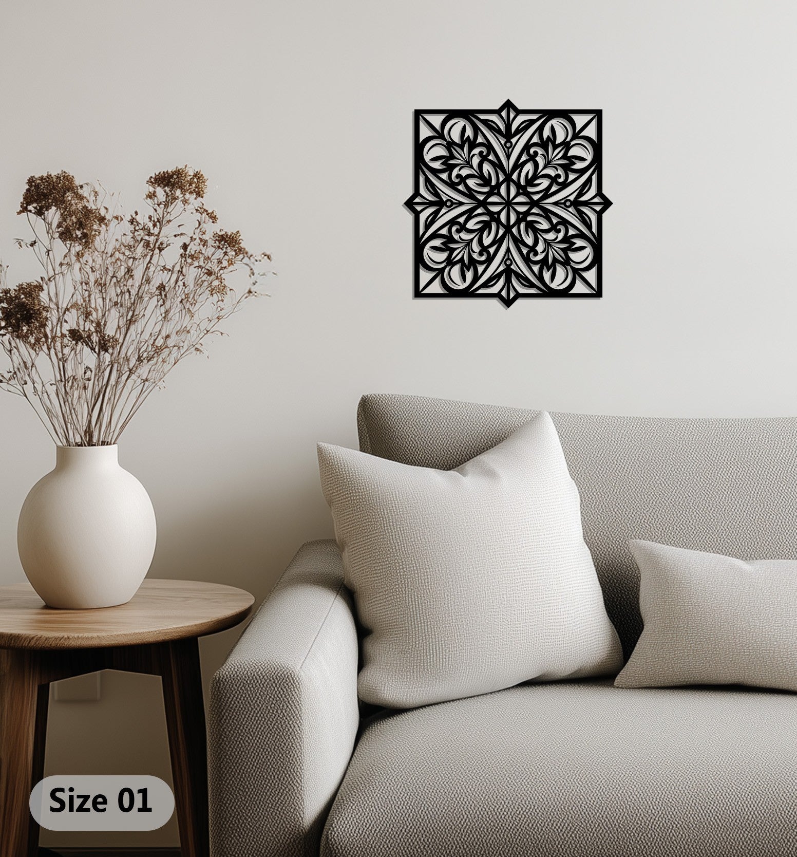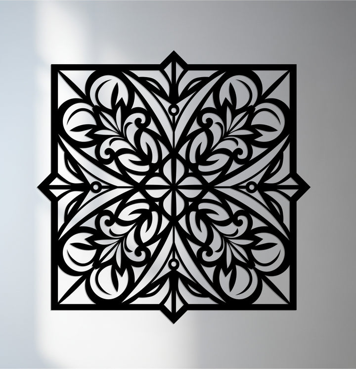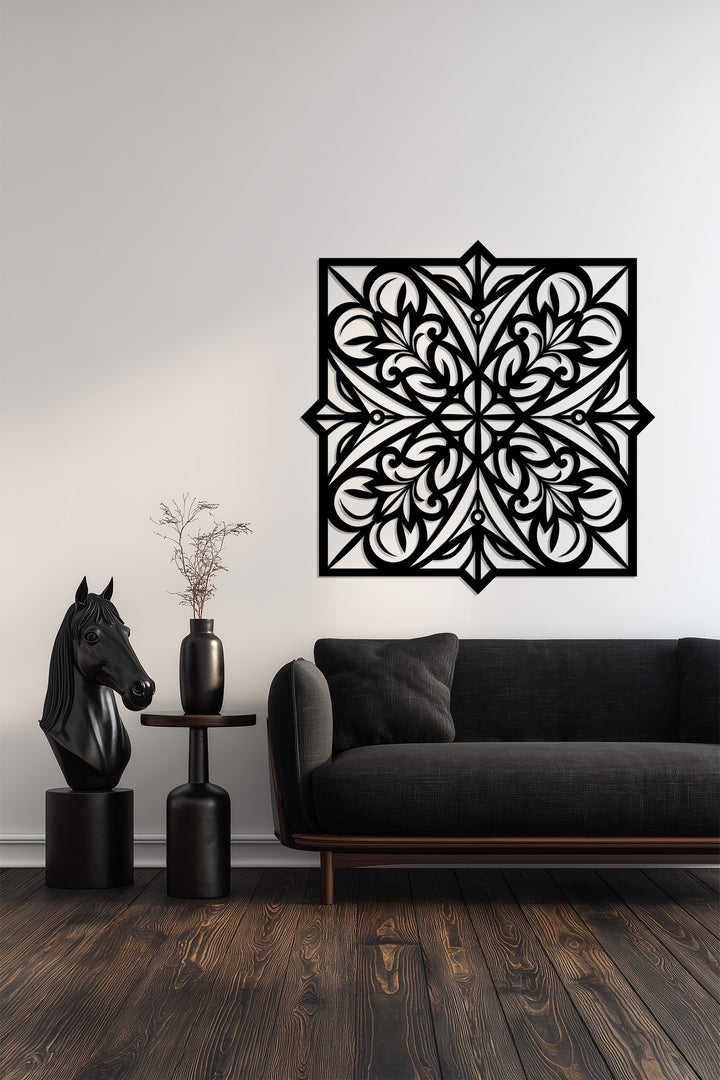 Crafted using precision laser-cutting technology, this ornamental wall piece showcases a striking black metal finish, perfectly contrasting against light or textured walls. The design embodies the perfect blend of luxury and modern craftsmanship, making it ideal for living rooms, entryways, or professional interiors that value artistic flair.