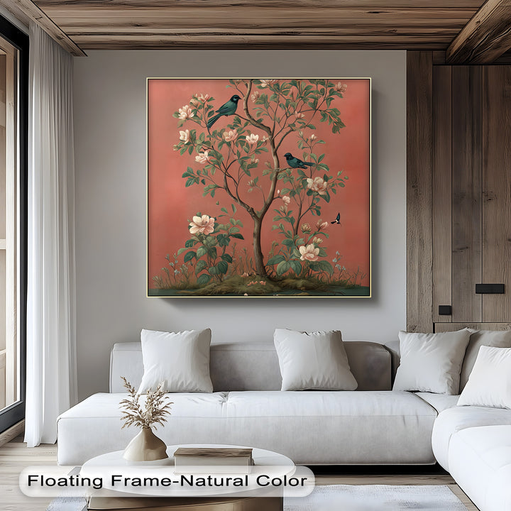 Perfect as framed canvas wall art, this piece enhances living rooms, bedrooms, or offices with a calming yet artistic presence. The contrast of soft florals with the lively birds makes it a stunning centerpiece, ideal for both modern and traditional interiors.