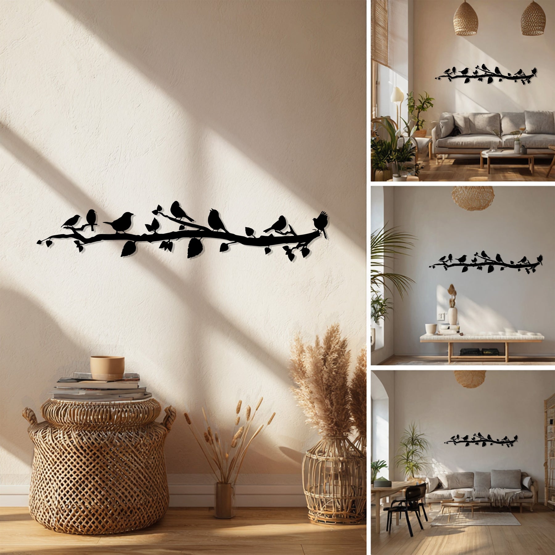 Bring the serenity of nature into your home with this Birds on Branch Metal Wall Art, a beautifully detailed black silhouette of birds resting on a leafy branch. Its graceful design adds harmony, warmth, and a touch of the outdoors to your interiors.