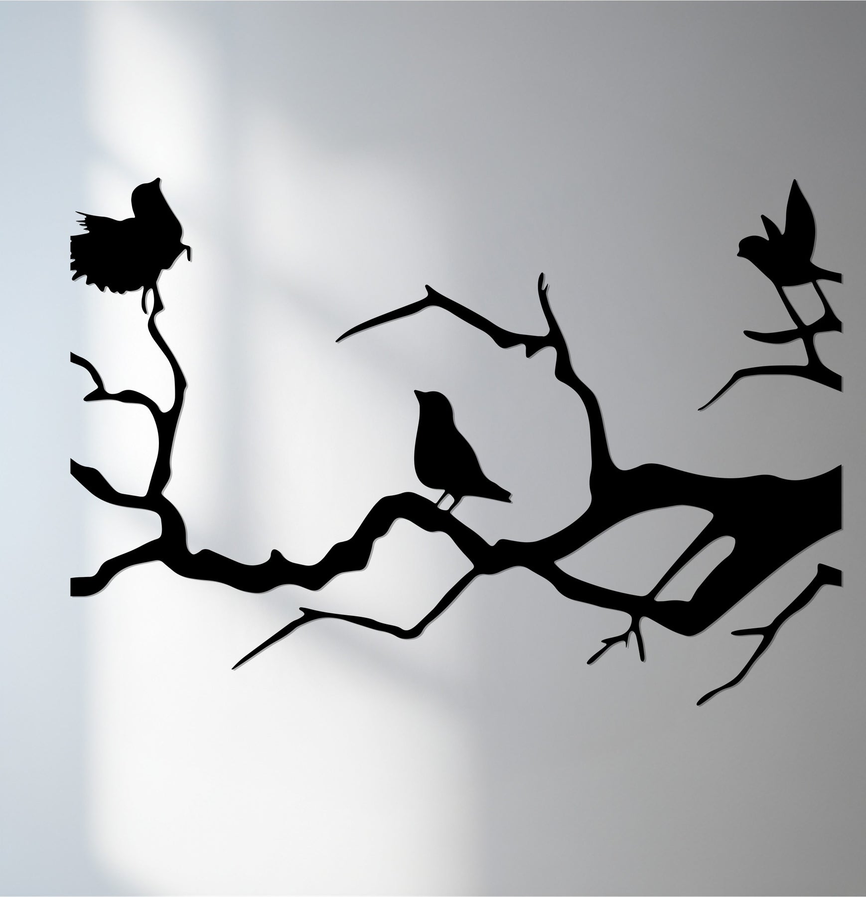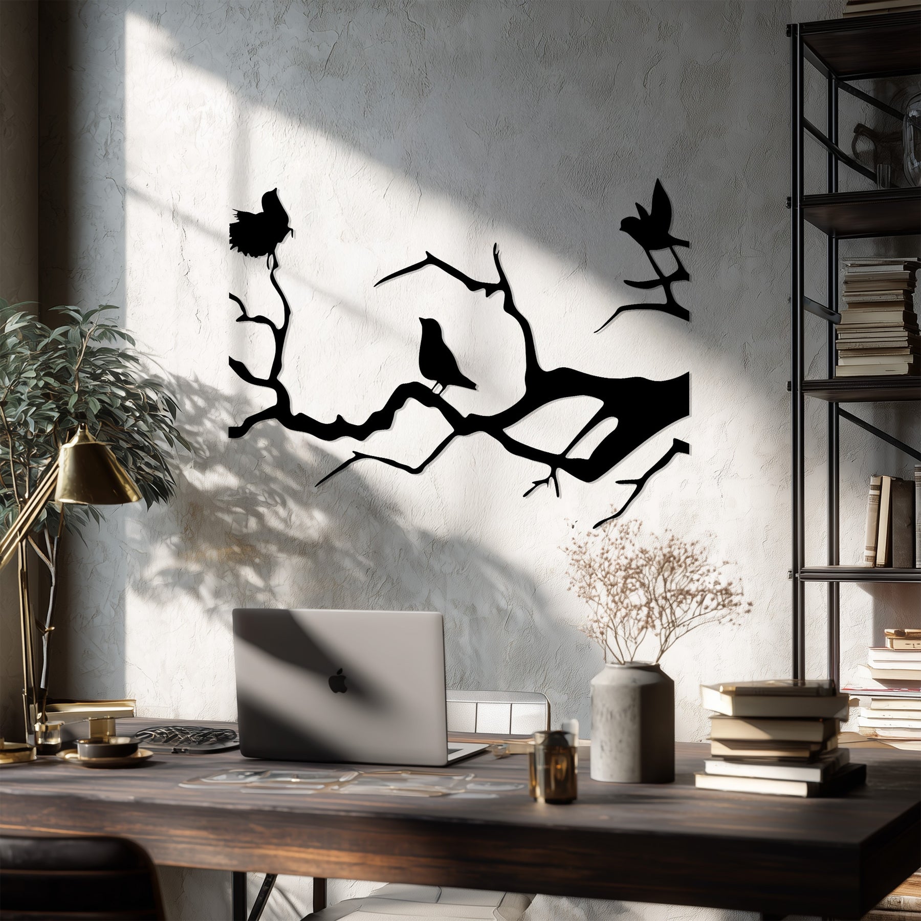 Bring the charm of nature indoors with the Birds on Branch Metal Wall Art, a graceful design featuring perched and flying birds on a detailed tree branch. This silhouette wall decor captures the beauty of wildlife and the tranquility of outdoor living, making it an ideal piece for nature enthusiasts.