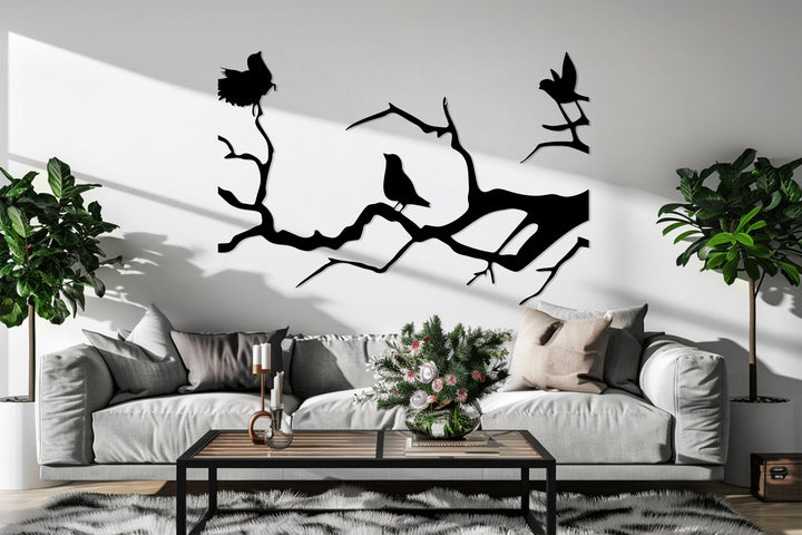 Birds on Branch Metal Wall Art – Nature-Inspired Silhouette