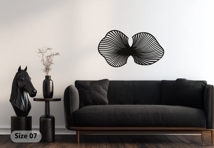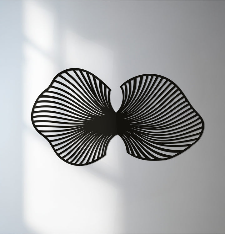 Bring elegance and movement into your home with the Black Abstract Wings Metal Wall Art. This striking design features two mirrored organic forms, shaped with flowing cutouts that resemble wings, petals, or waves. Its symmetrical pattern creates a sense of balance and modern sophistication, making it a perfect fit for both minimalistic and artistic interiors.