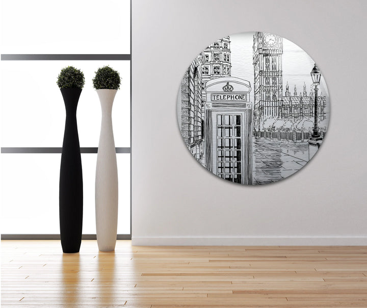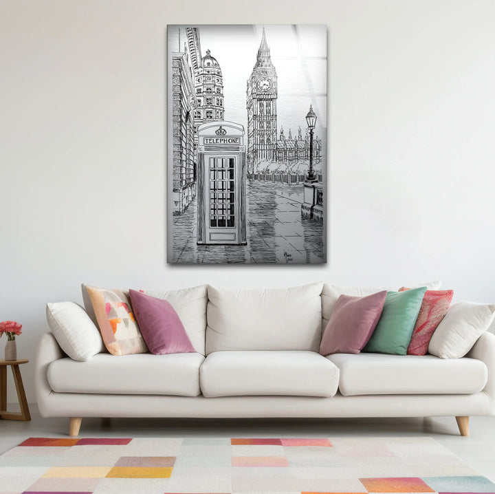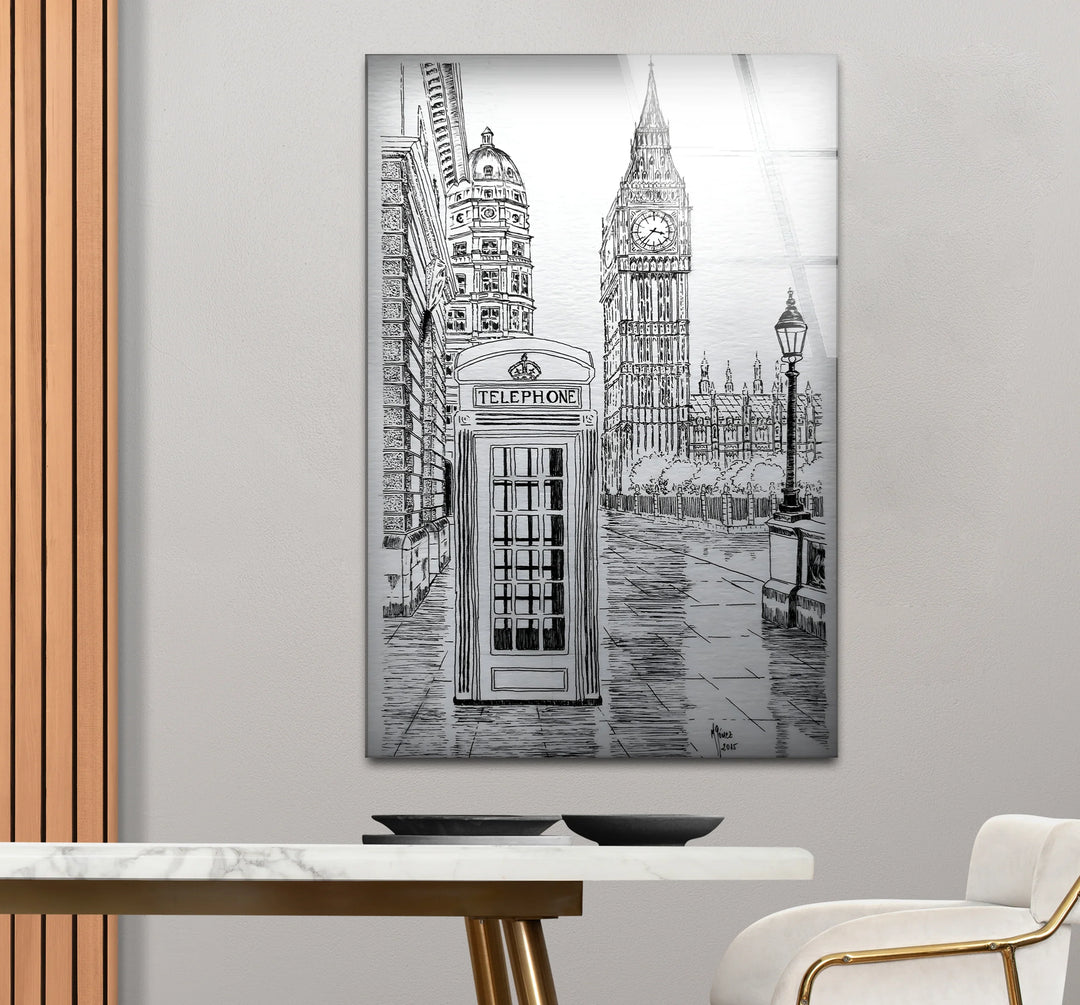 Bring London’s Charm Home with Black And White London Drawing Glass Wall Art
