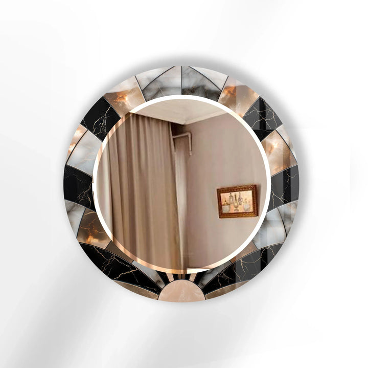 Black Marble Round Wall Mirror – Elegant Sunburst Frame Accent