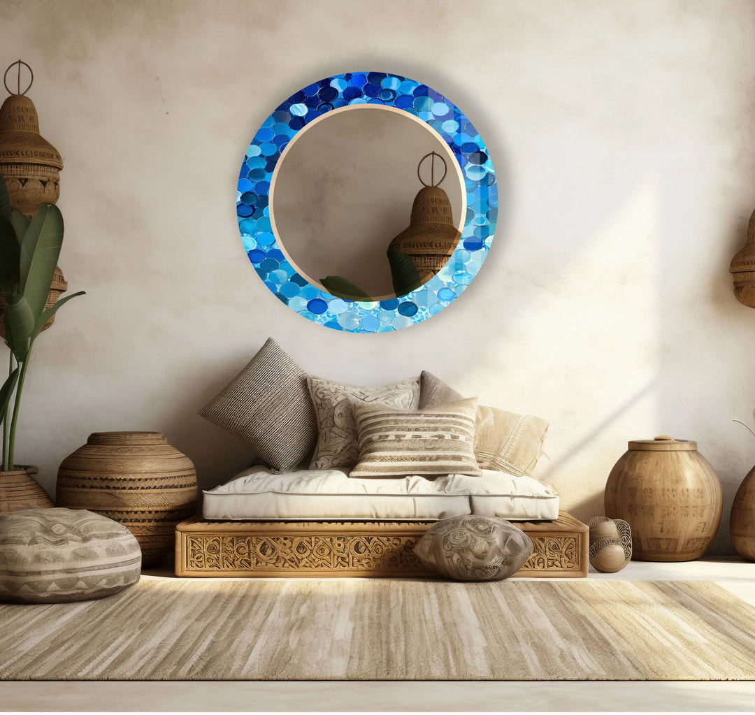 Blue Bubble Mosaic Round Wall Mirror – Coastal Style Accent for Modern Decor