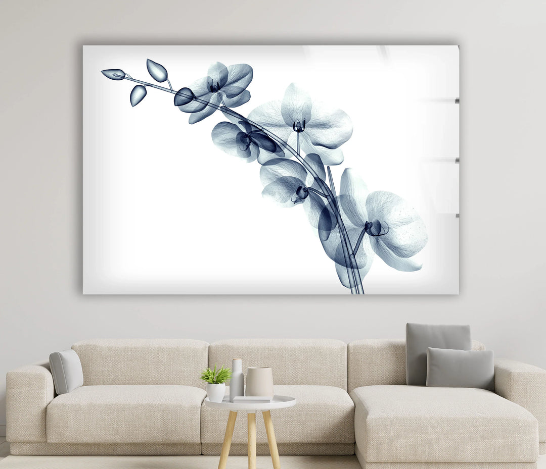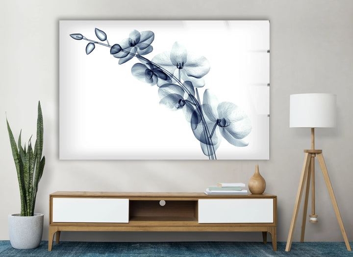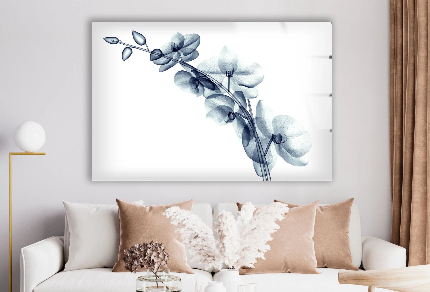 Blue Orchid Wall Art – Transparent Floral Glass Artwork for Home