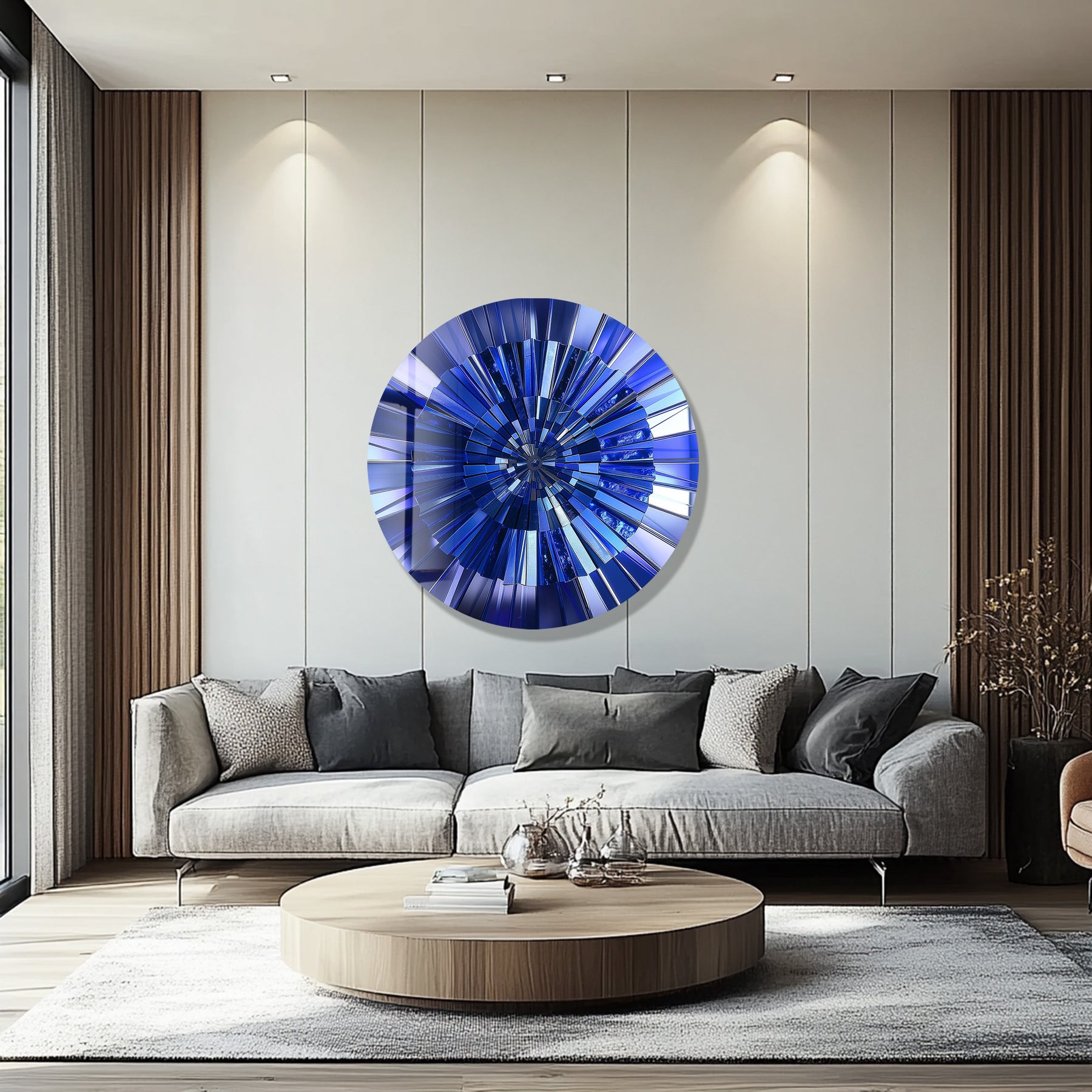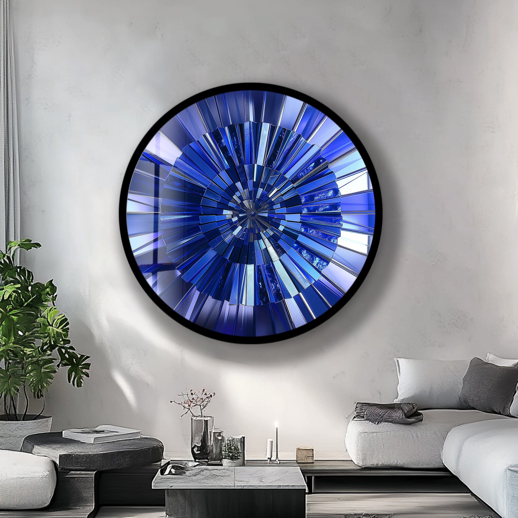 Illuminate your interior with the Blue Radiance – Deep Sapphire Round Glass Wall Art, a masterpiece that merges elegance and modern minimalism. The concentric design features layered blue tones that radiate from the center like light through crystal, symbolizing calm, strength, and clarity. The high-gloss surface enhances the brilliance of each hue, creating a reflective play of light that transforms any wall into a statement of luxury.