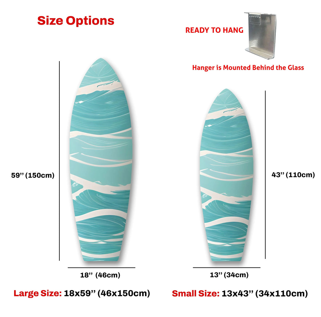 Transform your space with the soothing elegance of the Blue Sea Wave Surfboard cool art for walls and Glass Wall Art. This elongated surfboard-shaped piece features gentle, flowing wave patterns in soft blue and white tones, evoking a serene oceanic vibe. Its minimalist yet dynamic design makes it an ideal addition to coastal homes, modern interiors, or beach-inspired spaces.