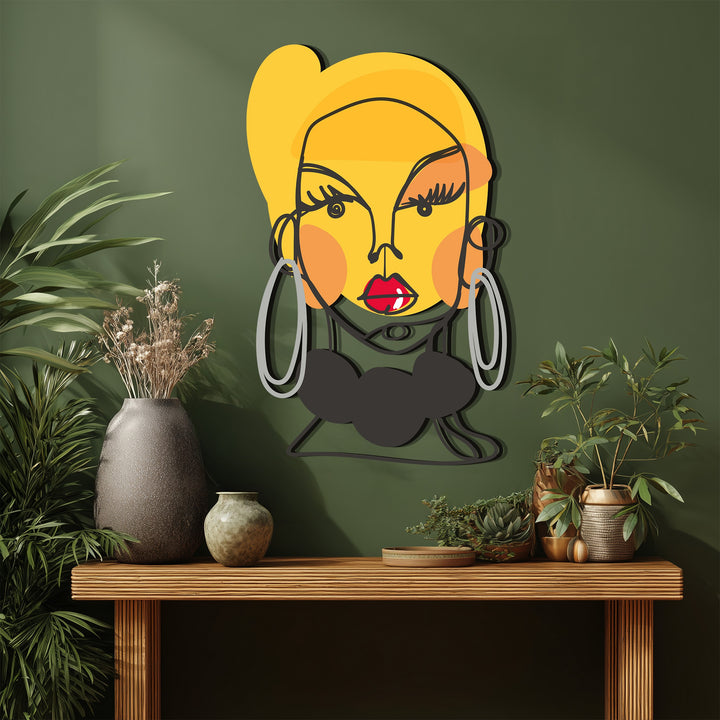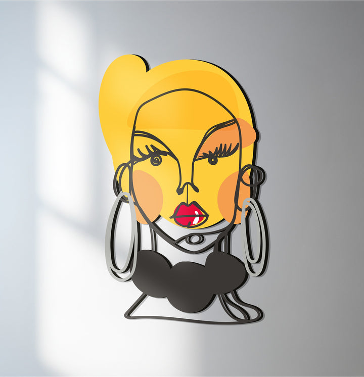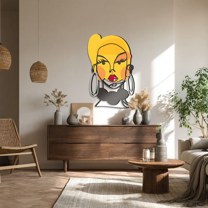 Bring fierce personality and modern artistry to your wall with the Bold Glamour – Abstract Woman Metal Wall Art. This striking piece captures a confident feminine expression through continuous line art and bold color accents. With its vivid yellow tones, glossy red lips, and expressive eyes, it celebrates individuality and empowerment in true contemporary style.