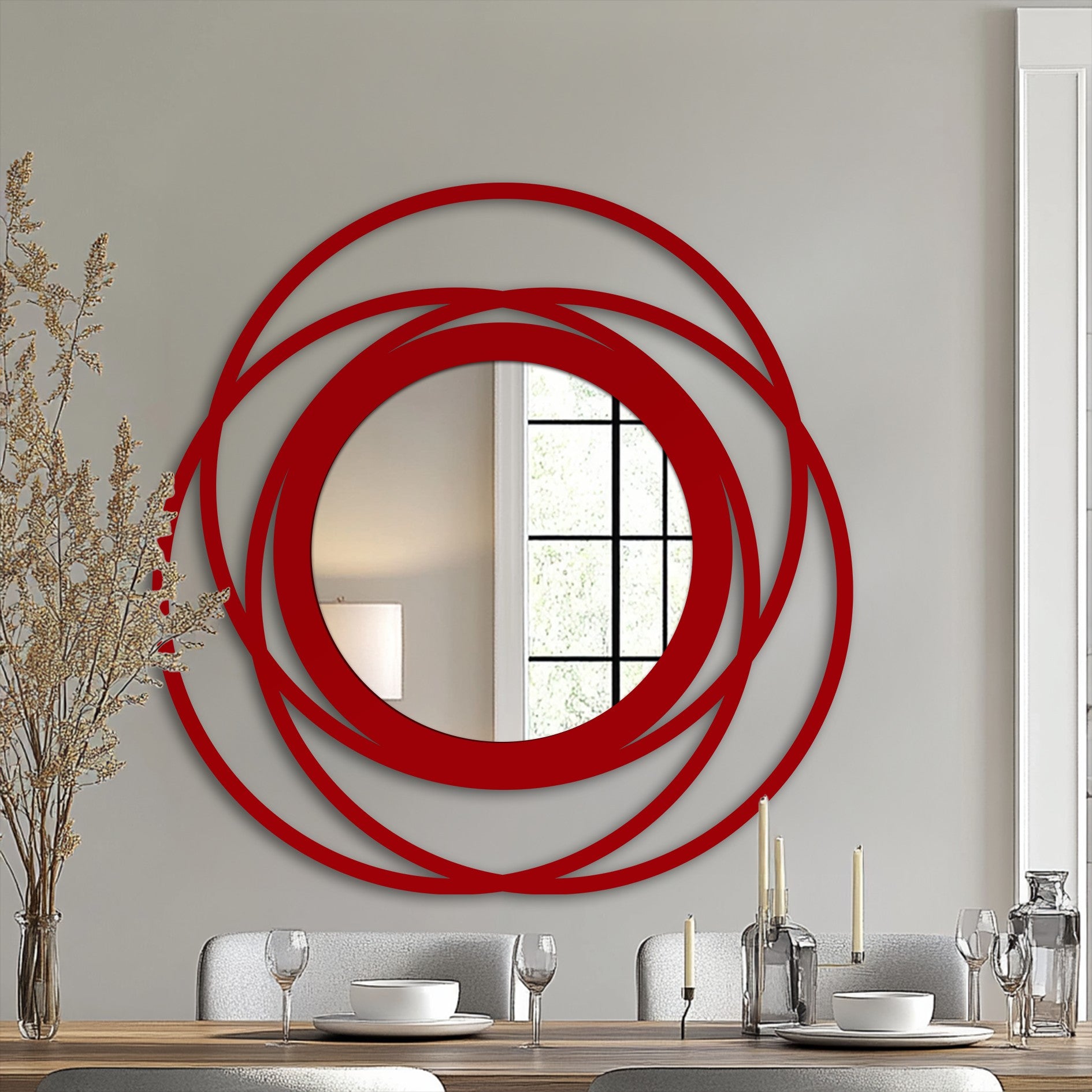 Designed as a decorative metal wall mirror, it amplifies light while adding depth and texture to your interior. The layered circular elements cast soft, rounded shadows, creating a lively and contemporary atmosphere throughout the day. Perfect for living rooms, bedrooms, entryways, or modern interiors, this mirror brings a unique blend of geometry and artistic flair.