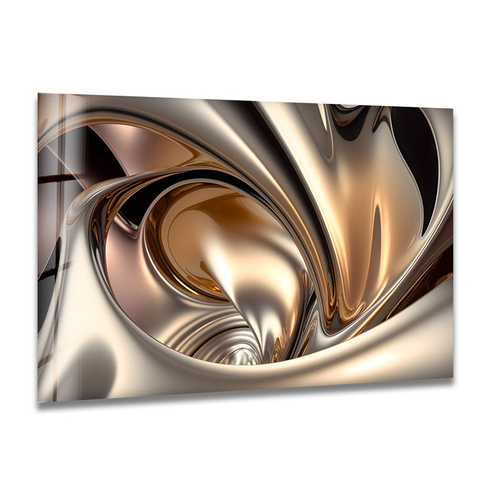 Enhance your interior with refined metallic elegance through Champagne Alloy Flow – Abstract Gold & Silver Chrome Glass Wall Art. This luxurious artwork blends soft champagne-gold tones with polished silver chrome, creating fluid, sculptural curves that appear both futuristic and timeless. The smooth, mirror-like reflections and flowing contours bring depth, warmth, and sophistication—perfect for modern luxury décor.